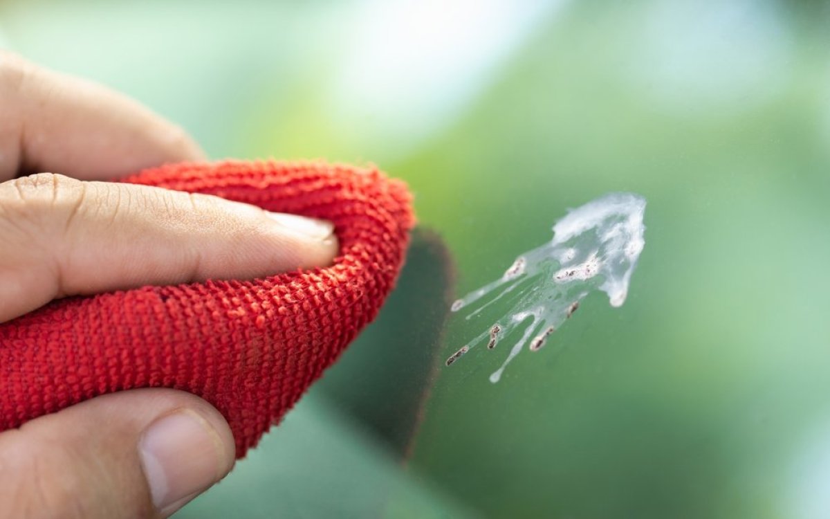 Za brzo i bezbedno uklanjanje ptičijeg izmeta sa karoserije dovoljno je imati nekoliko jednostavnih stvari pri ruci: mekanu mikrofiber krpu, a u nuždi mogu poslužiti i papirni ubrusi, zatim bocu sa raspršivačem napunjenu običnom vodom ili, još bolje, specijalnim "quick detailer" sprejom za automobile, dok su kao praktična opcija u vožnji korisne i vlažne maramice namenjene za čišćenje automobila.