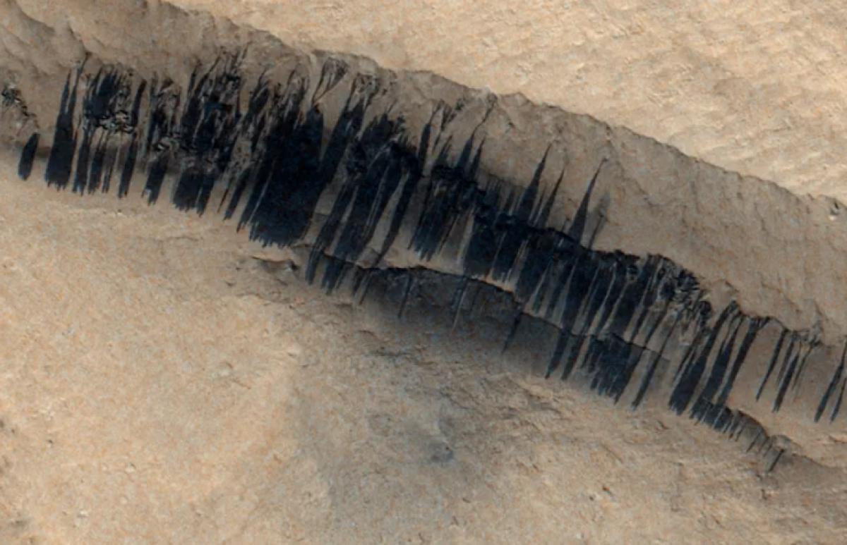 Naučnici veruju da se ove pruge na Marsu formiraju kada se slojevi fine prašine iznenada sruče sa strmog terena. Bez dokaza o vodi, zaključili su da su ove karakteristike uglavnom rezultat suvih procesa vođenih vetrom i aktivnošću prašine.