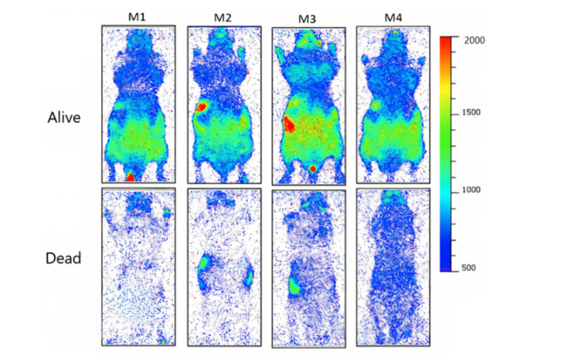 Da bi utvrdili da li se proces može primeniti sa izolovanih tkiva na cele žive subjekte, istraživači su koristili uređaje sa spregnutim naelektrisanjem za umnožavanje elektrona i kamere sa spregnutim naelektrisanjem kako bi uporedili najslabije emisije iz celih miševa - prvo živih, zatim mrtvih.