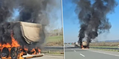 Kabina jednog kamiona, potpuno je izgorela u požaru, koji je zahvatio na autoputu Begrad - Niš.