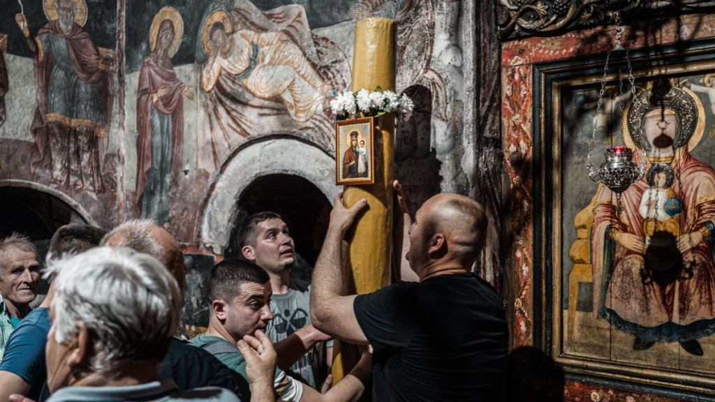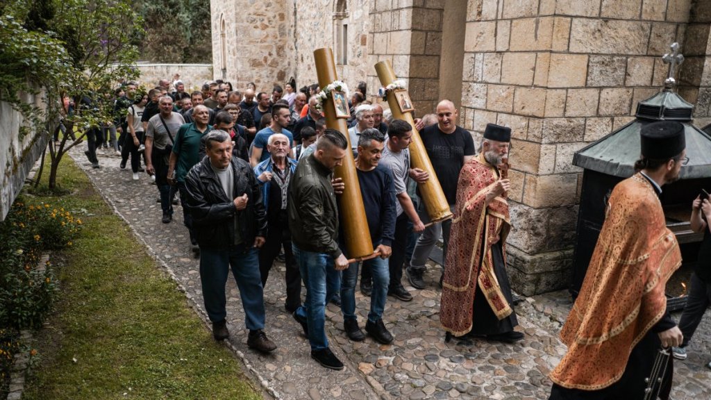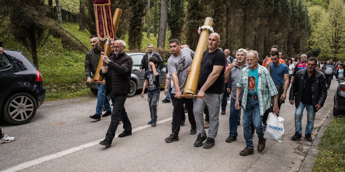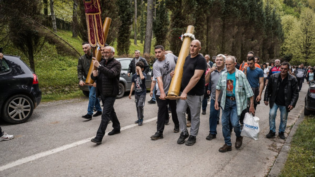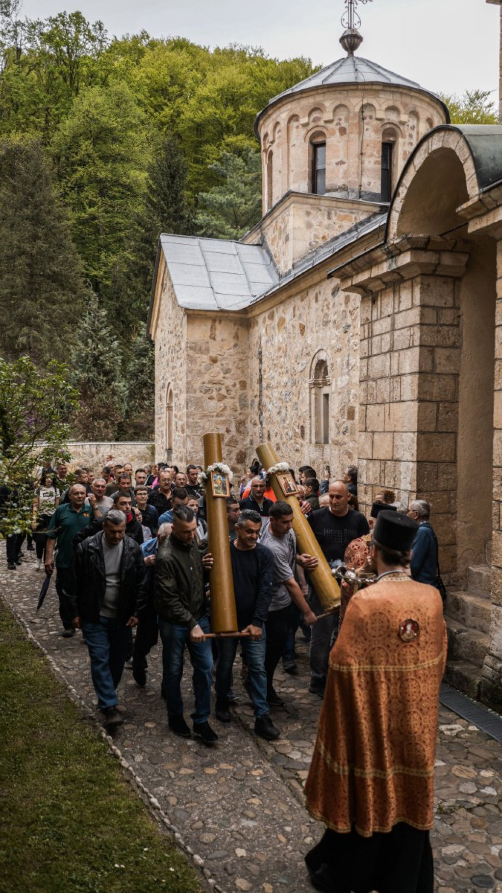 Tu ih ukrašavaju cvećem i u povorci nose do manastirskog dvoriša.