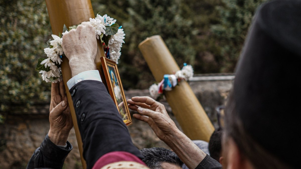 U dvorištu manastira, na sveće se postavljaju ikone Isusa Hrista i Bogorodice, a okupljeni građani sa sveštenstvom i monahinjama organizuju litiju oko crkve Vavedenja Bogorodice. Posle litije, sveće se unose u crkvu, postavljaju uz oltar.
