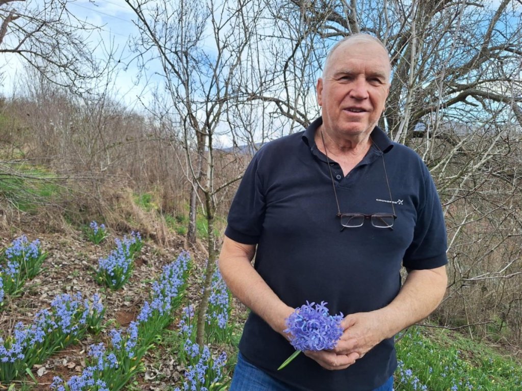 - Moja majka je uživala u cveću i kada bi došla sa njive prvo bi se njime bavila i zalivala ga, a onda radila sve druge kućne poslove. Ne znam kako je došlo do toga da počne da sadi zumbule, ali pošto je zasadila prva dva reda, svake godine bi sadila još po neki red lukovica iz prethodnih redova. Bila je baš uporna. Zbog problema sa zdravljem koje je imala, počeo sam da joj pomažem pa smo zajedno sadili. Ja napravim redove, a ona stavlja lukovice - priča Dušan.
