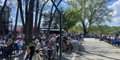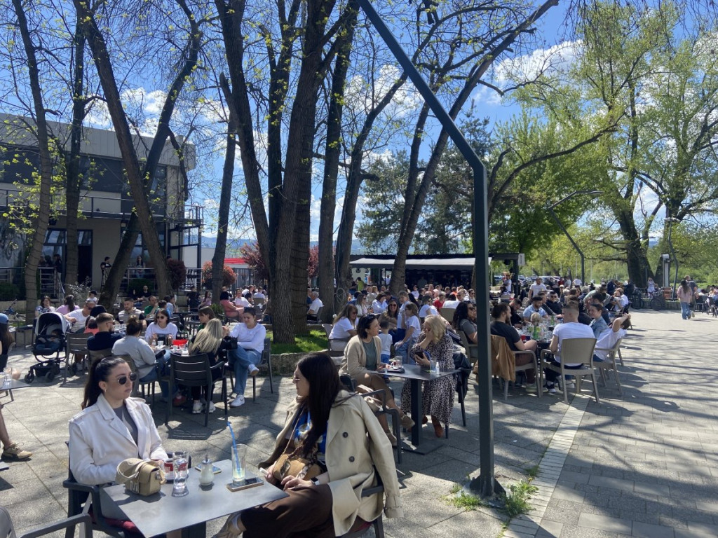 Na gradskoj plaži kraj Morave danas gotovo da nema slobodnih stolica u baštama kafića.