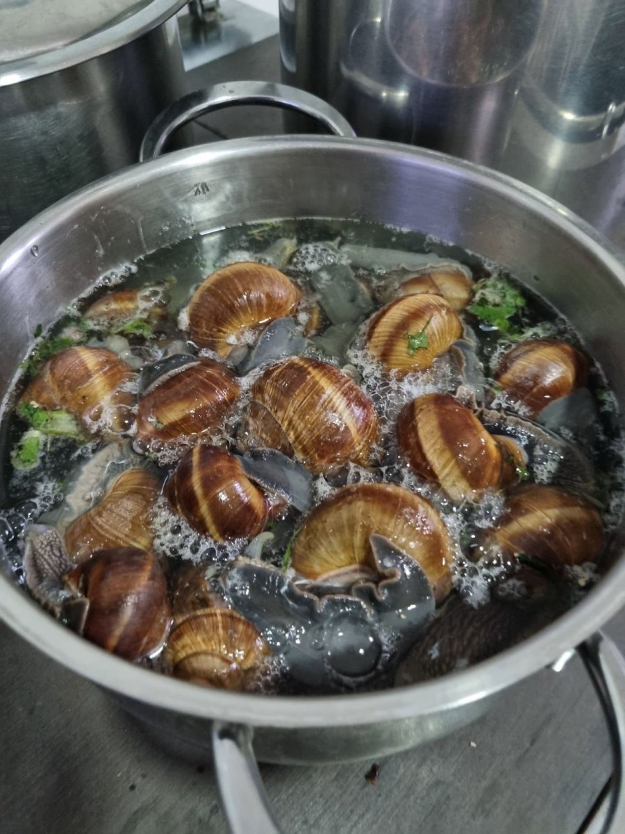 Prvi korak je da se puževi stave u hladnu vodu i polako dovedu do ključanja, kako se voda postepeno zagreva, oni se opuštaju i izlaze iz kućica, dok bi u vreloj vodi ostali uvučeni od “stresa”. Kada voda provri, drže se još 20 minuta na umerenoj vatri, potom se brzo ohlade i viljuškom pažljivo vade.