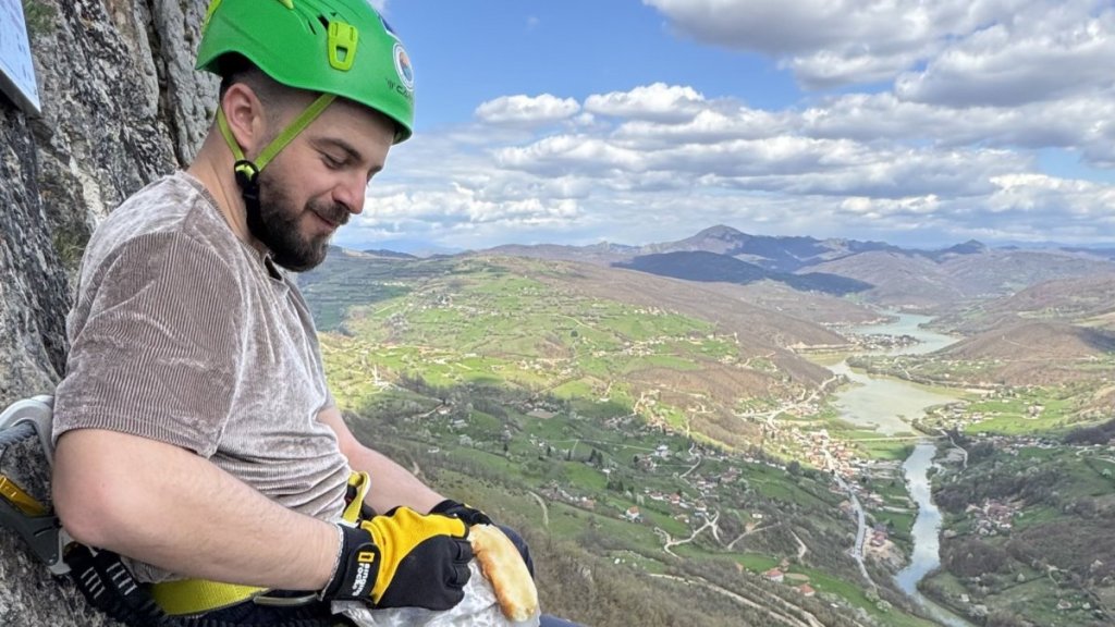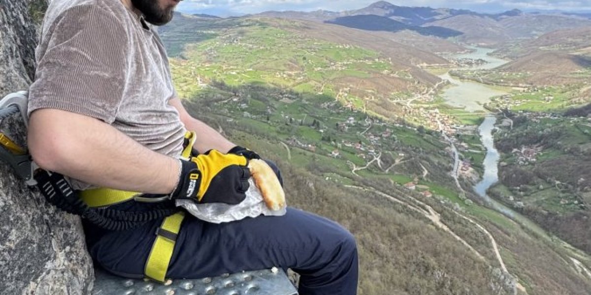 - Ne postoji slađi, ali ni opasniji zalogaj! Dobar burek ne bira ni mesto, ni vreme. Za ovu zahtevnu via ferratu potrebni su dobra volja, snaga i izdržljivost, moralo je i nešto da se prezalogaji - rekao je kroz osmeh planinar Ernes Gusinac za agenciju Rina.
