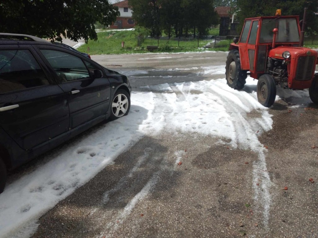 Teška oluja pravi haos u Podunavlju, a prema fotorgafijama i video snimcima koji stižu iz sela Stojačak u Smederevskoj Palanci, u tom kraju čini se kao da je pao sneg u maju, jer je grad dobro zabeleo, pa se autobusi i vozila jedva probijaju.