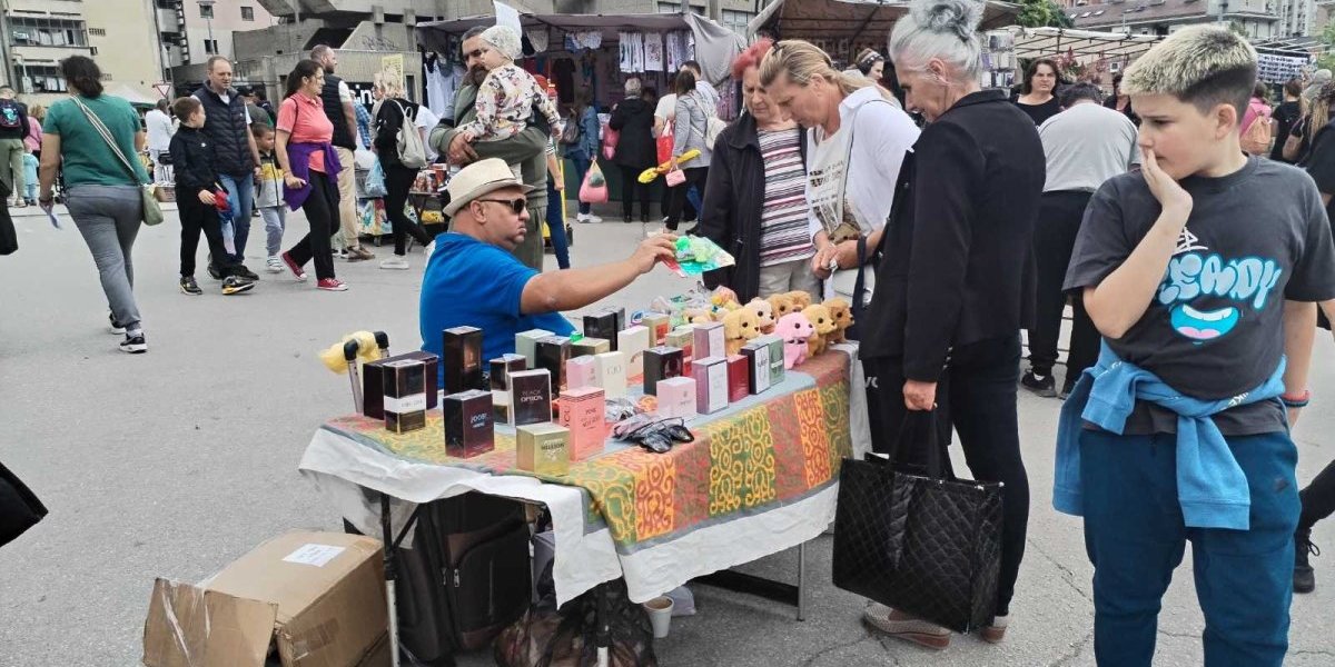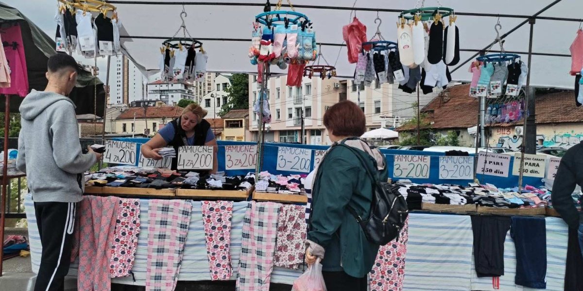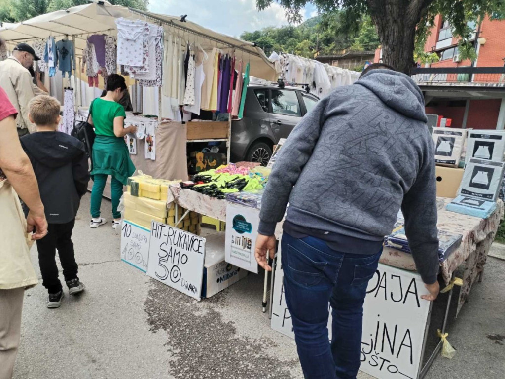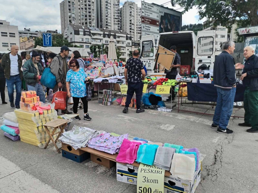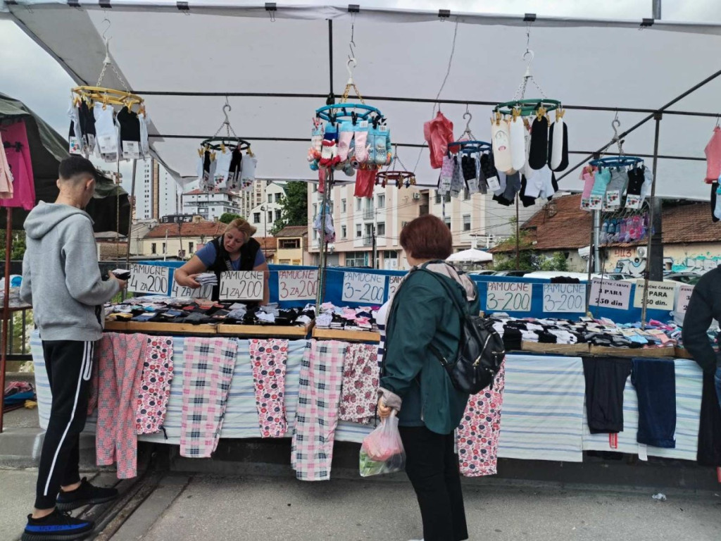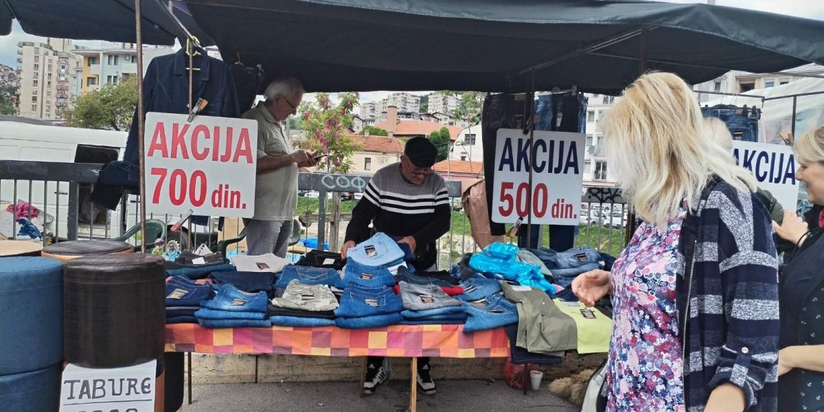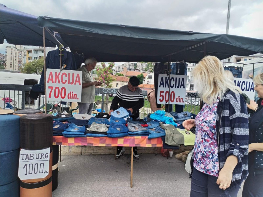 Farmerke su se mogle naći za 700 dinara, radničke pantalone za 1.500 dinara, dok su majice sa motivima za lovce i ribolovce od 1.200 do 1.500 dinara, a obične od 400 do 700 dinara. Bilo je i prafema, neki nudi dva za 100 dinara, a jedna prodavačica vice:”Armani parfem, samo 500 dinara!”.