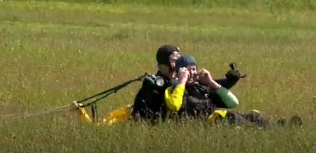 Posle tridesetak sekundi, žuti padobran se otvorio, a Biljani je vidno laknulo. I doskok je bio savršen, a onda je krenuo aplauz svih prisutnih.