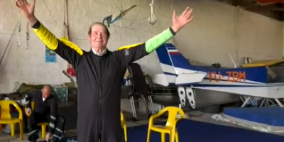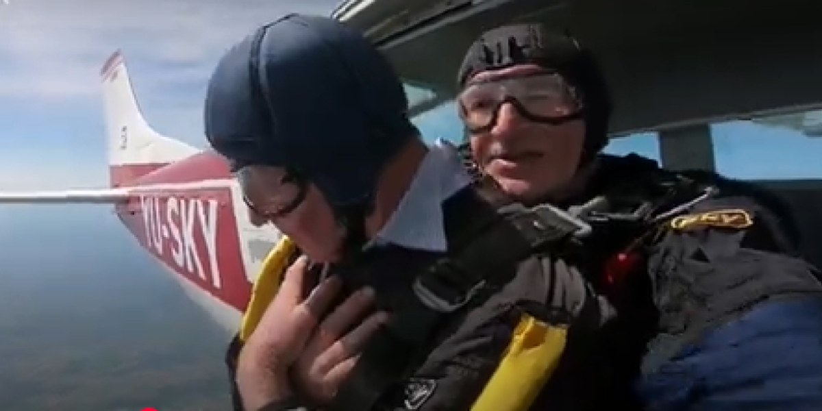 A kad su se noge odvojile od aviona i krenuo slobodan pad, mala kamera je zabeležila Radišino oduševljenje.