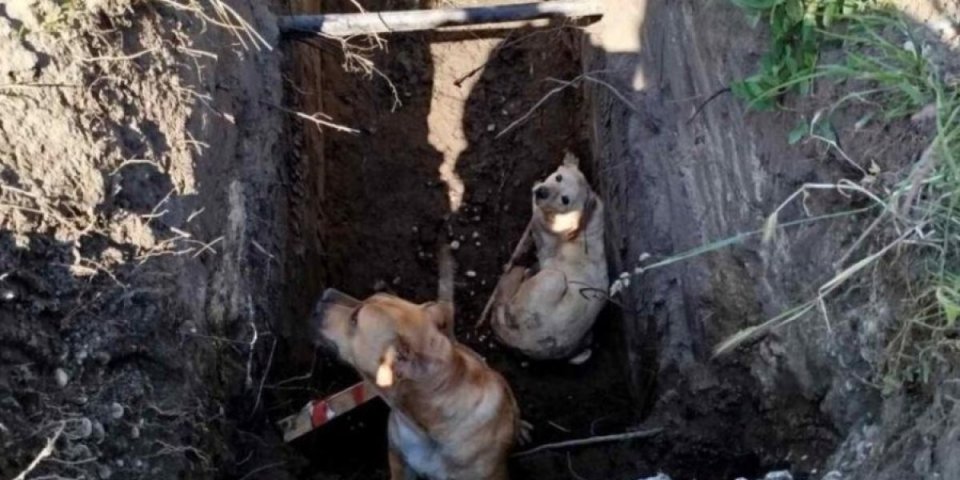 Po dolasku na lokaciju, videli su dva psa koji su cvileli sa dna duboke rupe u koju su upali.