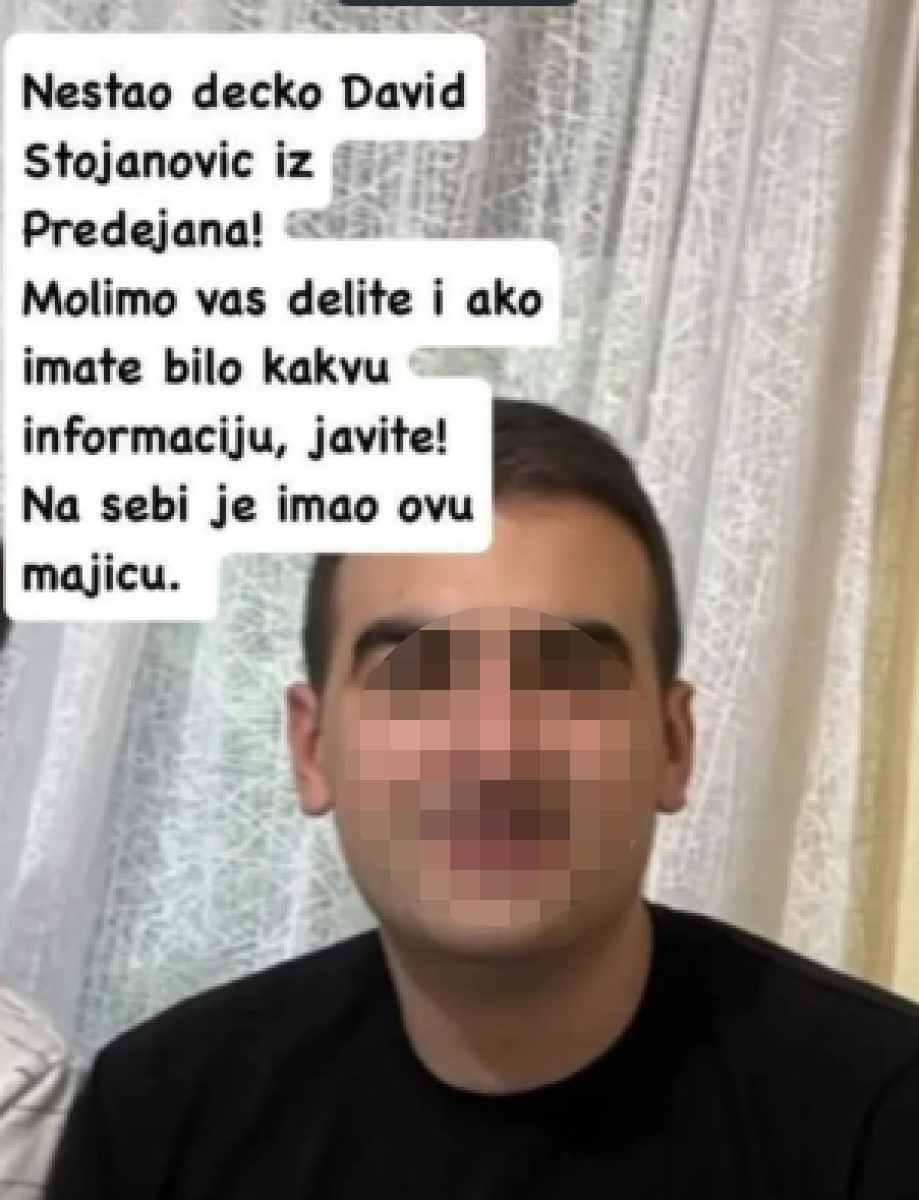 David Stojanović (22) iz Predejana je u momentu nestanka imao crnu majicu i crne pantalone.