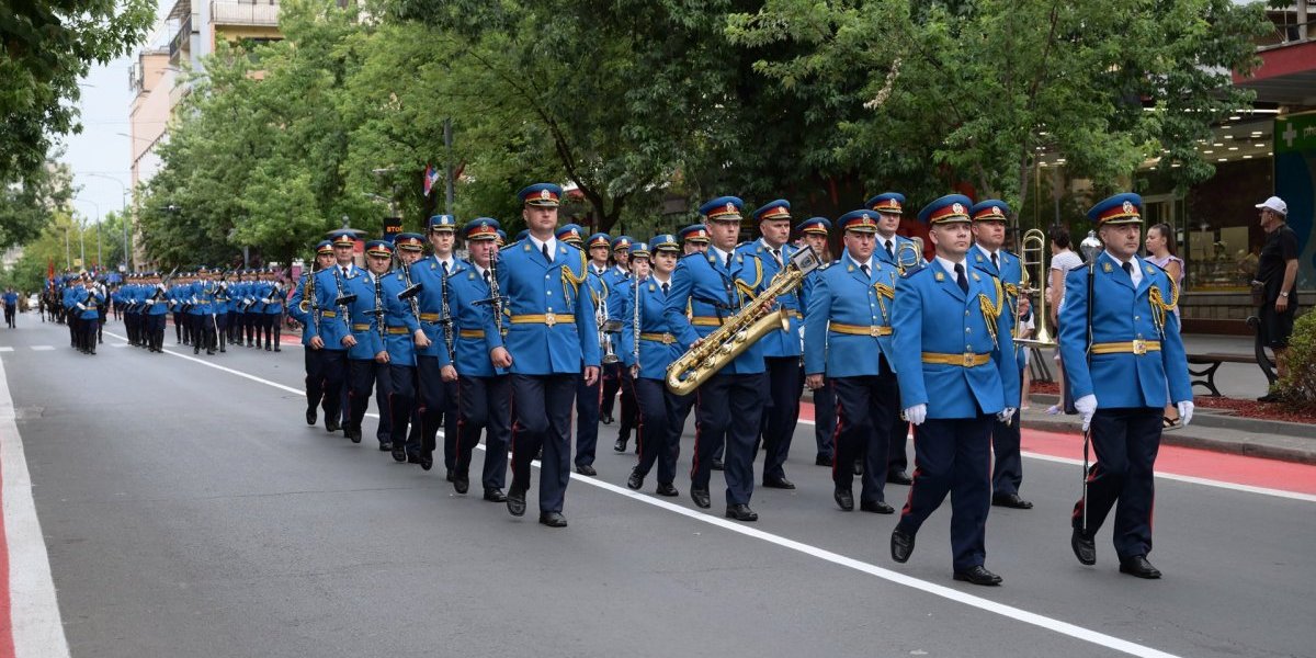 Reprezentativni orkestar Garde, pod dirigentskom palicom potporučnika Darka Stoiceva, započeo je defile kompozicijom "Marš na Drinu", a mnogobrojni građani aplauzom su pratili plave gardijske uniforme i konjički vod Vidovdanskom ulicom do Spomenika kosovskim junacima.