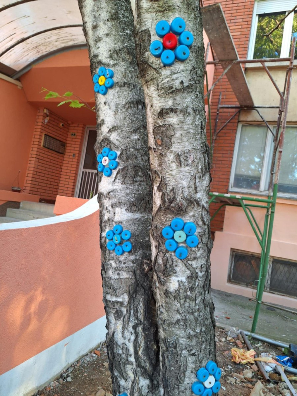 Za ukrašavnje drveća kreativci su koristili najrazličitije materijale – zatvarače, tkanine, kanape, korpice, saksijice sa cvećem…Drveće je zahvaljujući njima dobilo leptiriće, srca, cvetiće...