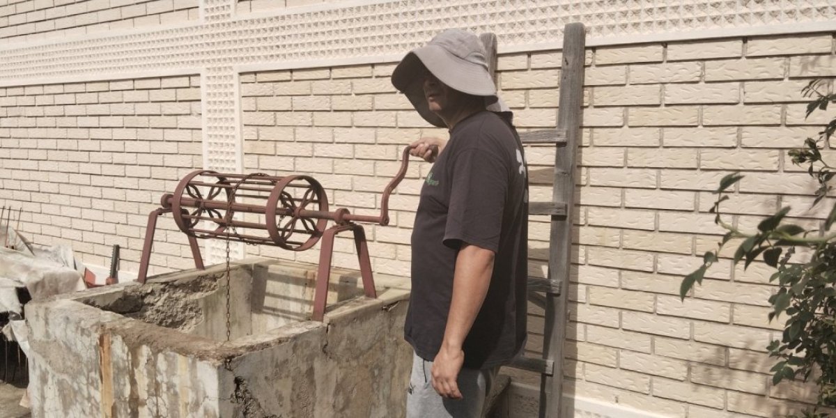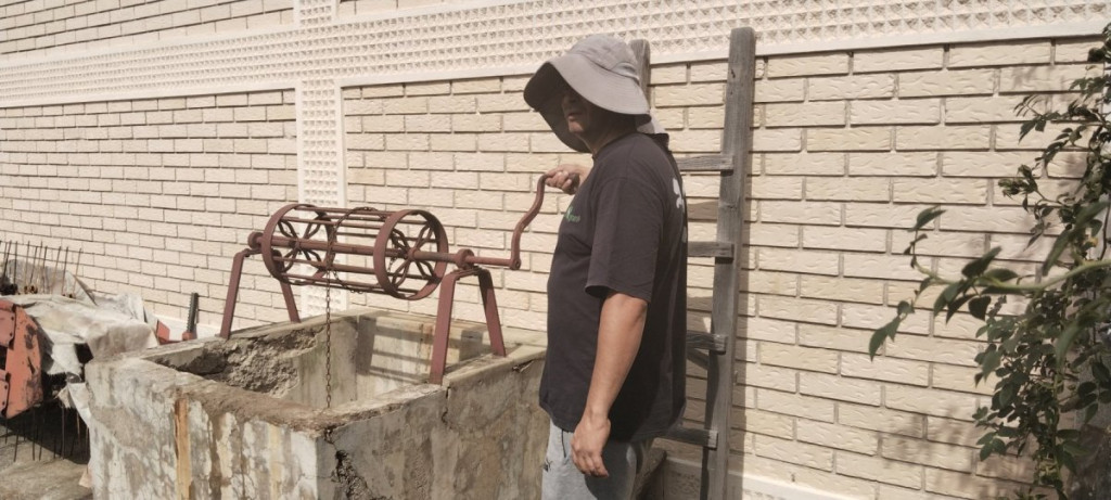 Tekuće vode nema pa meštani pokušavaju da iz skoro presahlih bunara izvuku kofama pomalo vode da savladaju vatru.