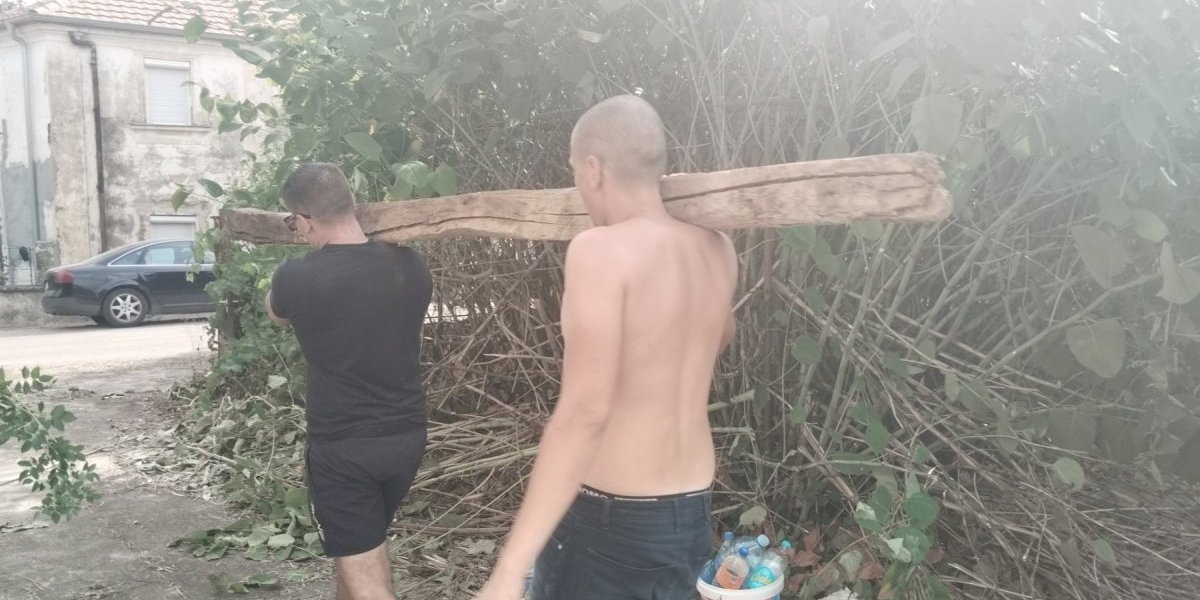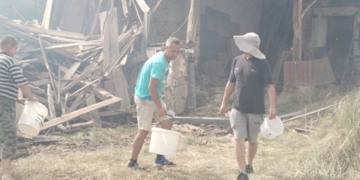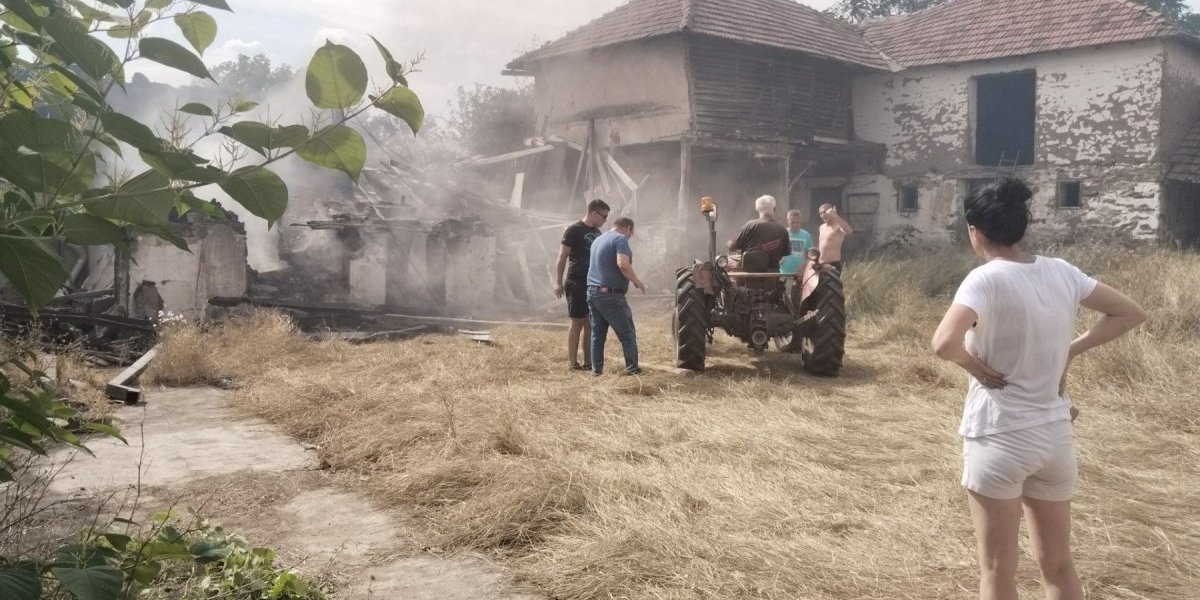 Par stotina metara dalje njene komšije su se organizovale i krenule u bitku sa požarom. Dok jedni crpe vodu iz bunara, drugi traktorom ruše kuće a treći iznose grede i drugi zapaljivi materijal.