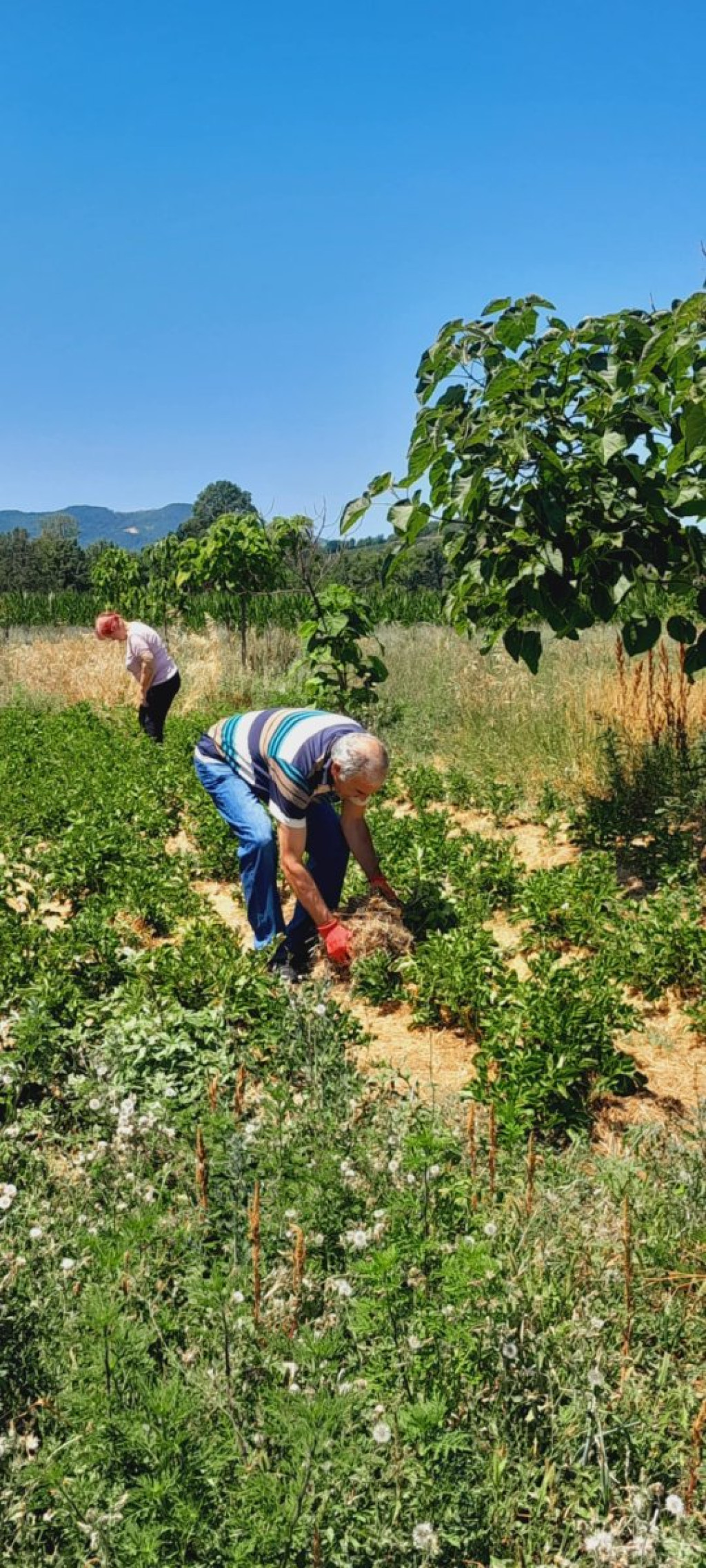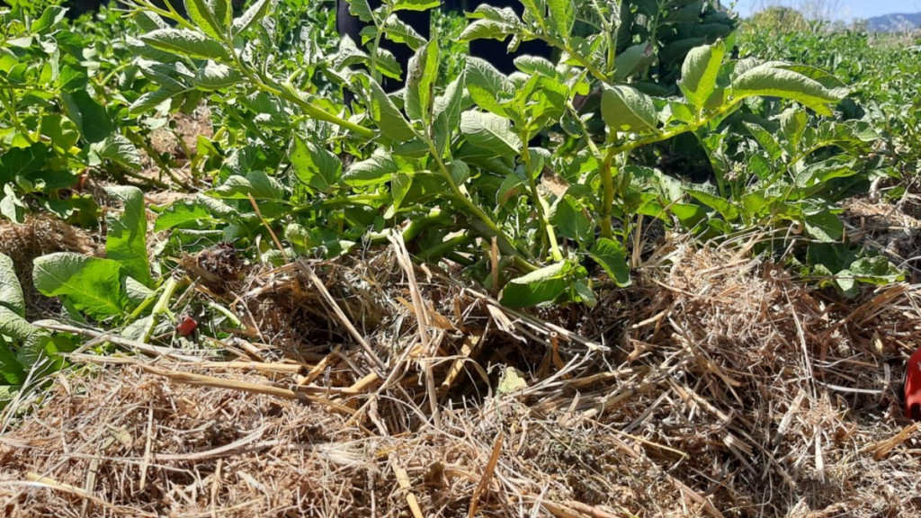 - Krompir se zaseje kao i obično samo ne toliko duboko, već pliće tek toliko da se zatrpaju krtole. Onda preko zemlje stavimo slamu, pokošenu travu i to radimo svaki put kada kosimo dvorište, dakle ne bacamo košenu travu, ne palimo kao što mnogi rade, nego sa tim zagrćemo krompir kao što inače svi rade zemljom. Nekoliko puta do sada stavljali smo oko njega slamu i travu a zalili smo ga samo jednom - priča Miloš.