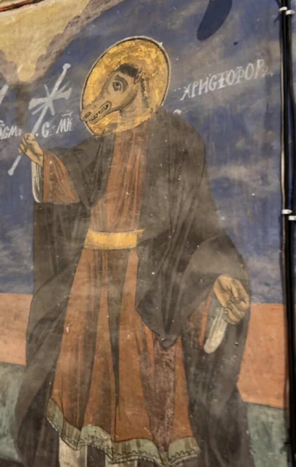 Tako je u ovdašnjoj manastirskoj crkvi predstavljen Sveti Hristofor.
