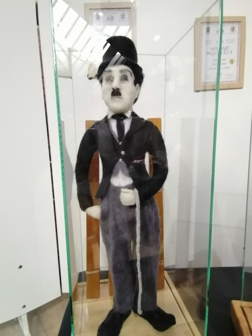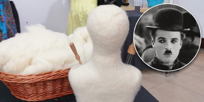 - Figura Čarlija Čaplina teška je oko dva kilogram. Ovako na oko deluje da to nije ništa, ali to je ogroman džak vune, jer ona je veoma laka i zato je i potrebno dosta vremena da se izbocka.