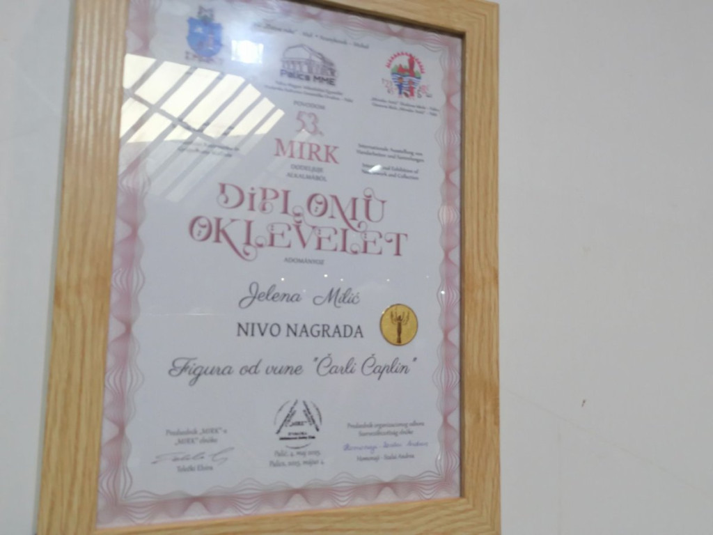 Početkom maja na Paliću je održana Međunarodna izložba rukotvorina i kolekcionarstva, gde je osvojila dva priznanja – jedno za već završenu figure Čarlija Čaplina, a drugo za figuru Tesle koja je u procesu nastajanja.