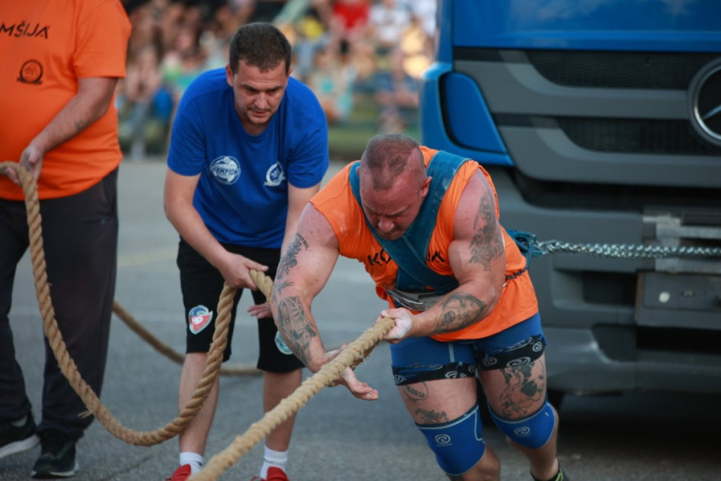 Divovi su priredili nezaboravan program u pet disciplina. Matjaž Belšak iz Slovenije težak je 130 kilograma, visok 187 centimetara i ne uklapa se u stereotip o snagatorima.