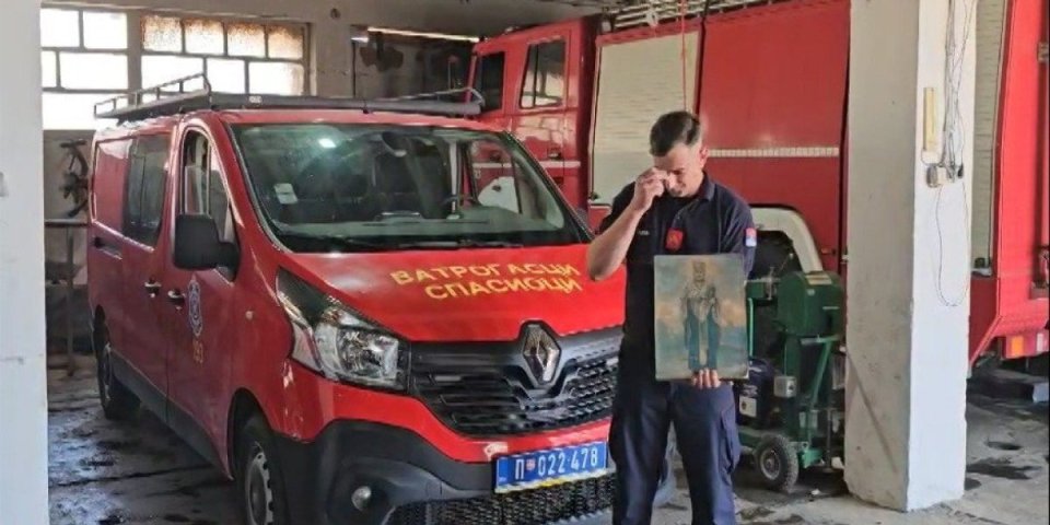 - Presekli smo putanju požara i uspeli da zaustavimo vatru. Prilikom intervencije u kući koja je bila u plamenu, sa koje se obrušio krov i unutra sve izgorelo, na zidu smo primetili ikonu Svetog Nikole. I dalje je visila prikačena za zid delićem nekog kabla - ispričao je vatrogasac - spasilac Bojan Gagić koji je ikonu izneo iz ruševina izgorele kuće.