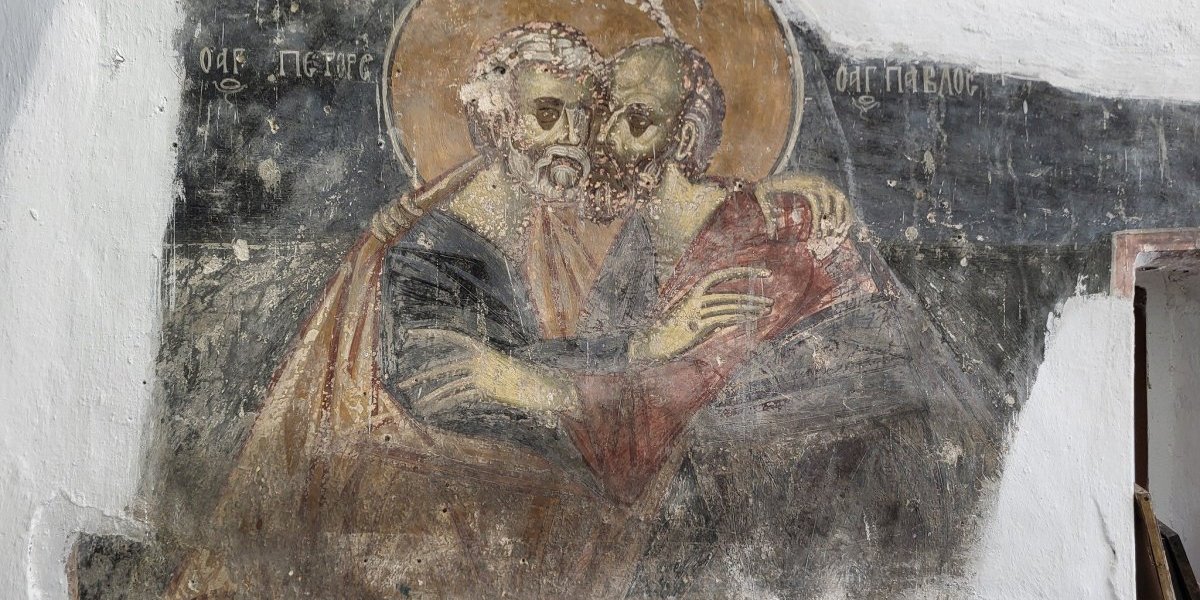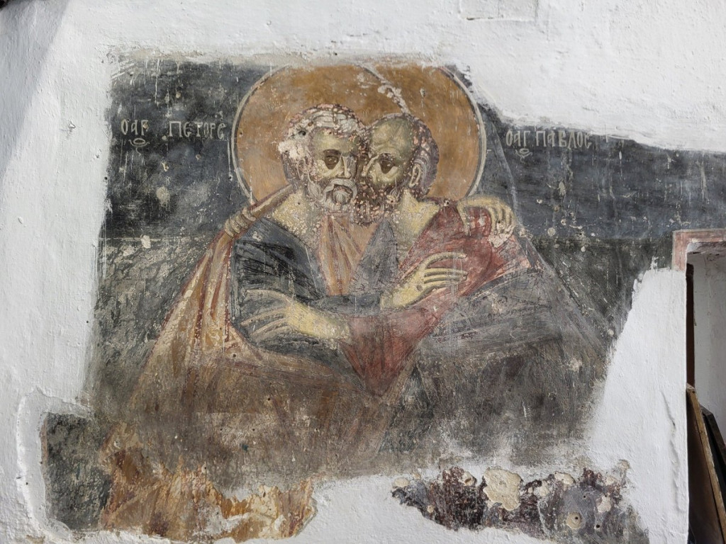Crkva posvećena svetom Petru i Pavlu, a čija je zaštitnica danas sveta Petka, sagrađena je i živopisana 1563/4, da bi bila znatno obnovljena u drugoj polovini 19. veka. Osim grčkih natpisa i stila, odaje ga i retko ikonografsko rešenje predstave sv. Petra i Pavla u zagrljaju, naslikano uz prvobitni ikonostas.