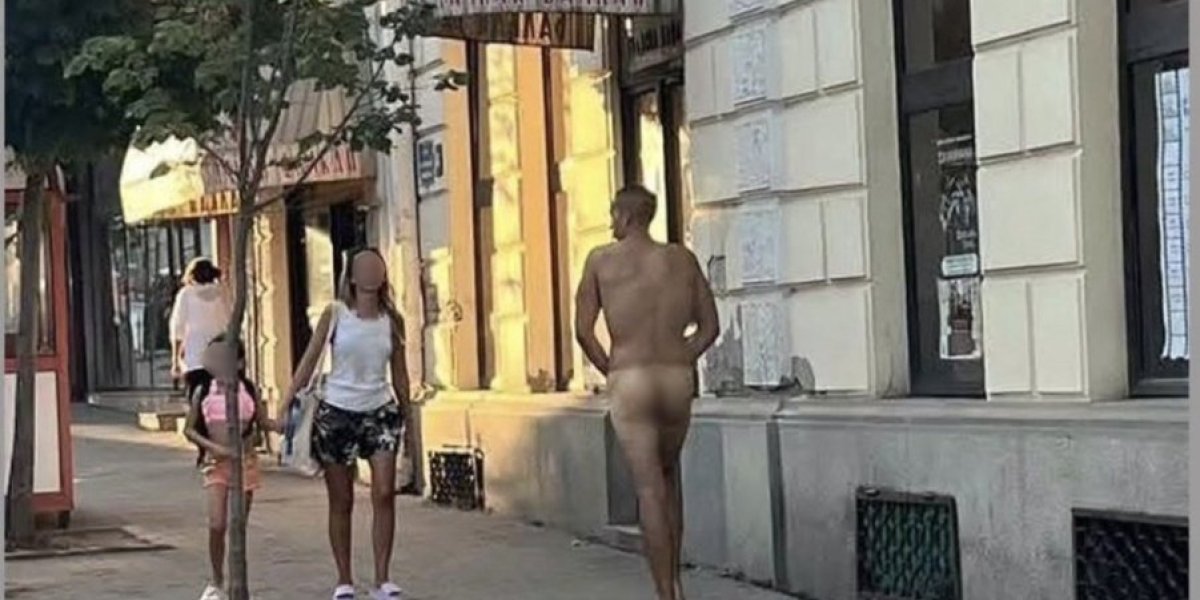 Na fotografiji koju je objavio lokalni portal ucentar.rs vidi se mlada žena koja za ruku drži devojčicu dok se mimoilazi sa golim mladićem u Ulici kralja Aleksandra I Karađorđevića.