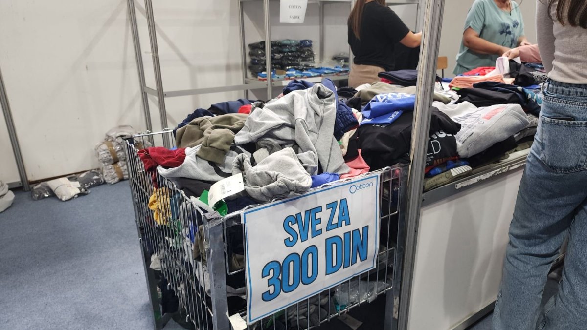Na tezgama se mogu pronaći različiti proizvodi - od donjeg veša koji košta svega 50 dinara, preko trenerki za 300 dinara, pa sve do školskog pribora i rančeva. Posebno je zastupljena garderoba za decu, što i ne čudi, jer se približava početak školske godine.