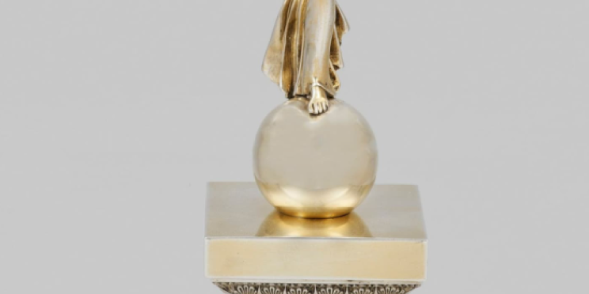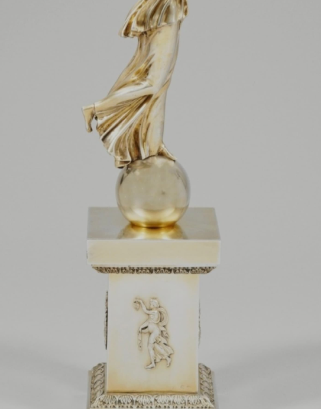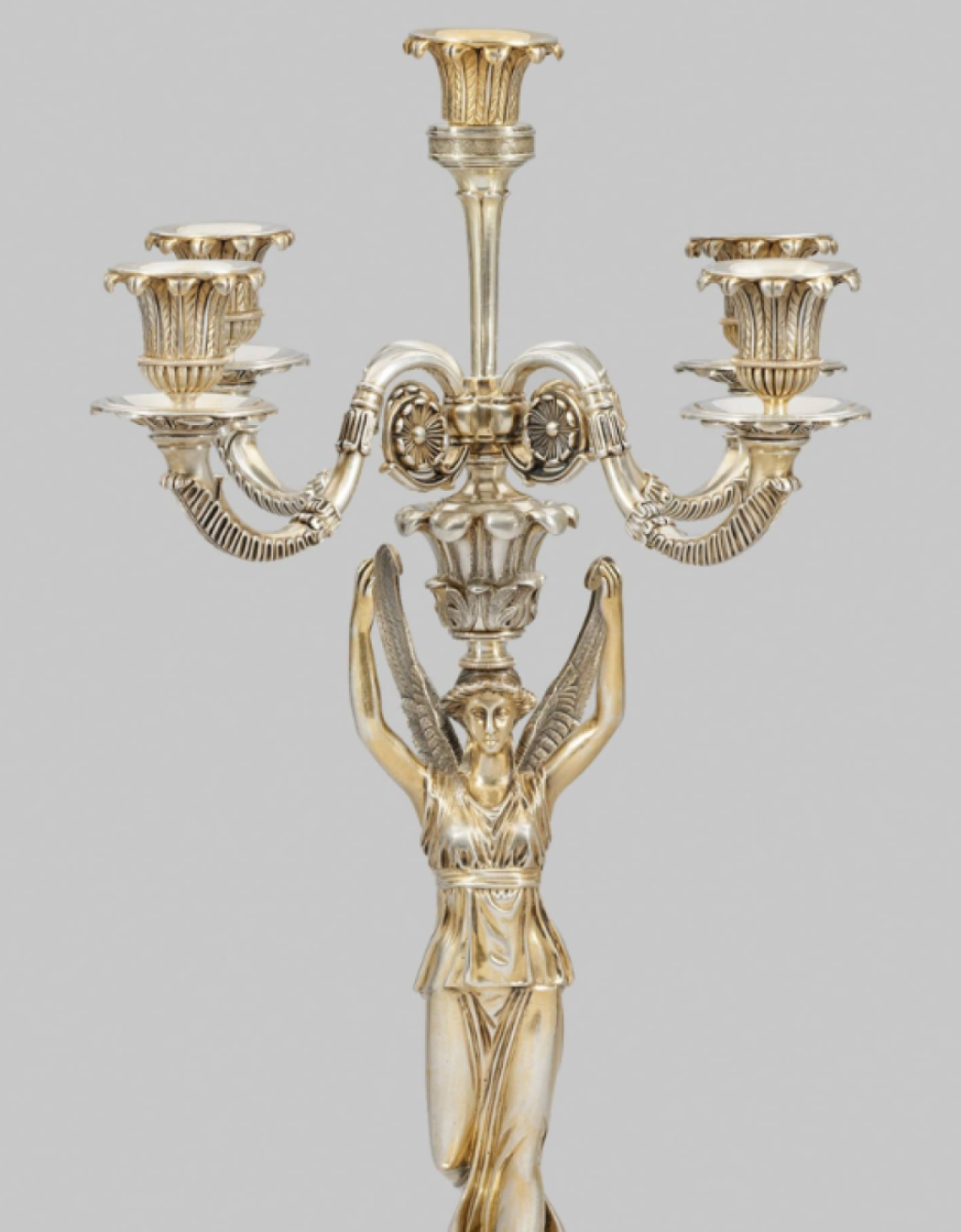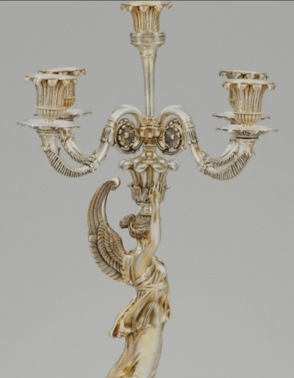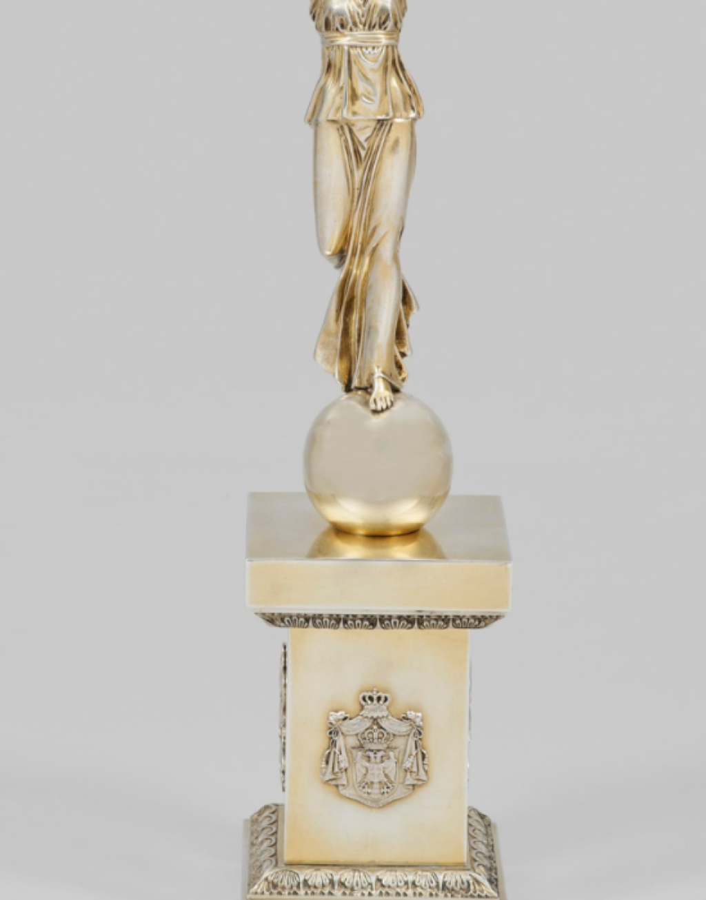 Petokraki svećnjak u Ampir stilu, sa skulpturom boginje pobede Nike (Viktorije), težak je čak 8 kilograma i 30 grama srebra, visok 78 centimetara i delo je čuvenog bečkog zlatara Antona Kola.
