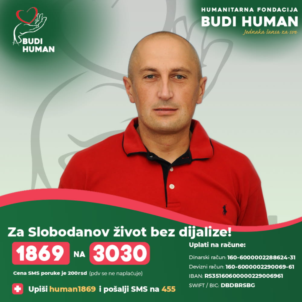 Za divnog Slobodana je pokrenuta humanitarna akcija. Svi ljudi dobre volje mogu pomoći uplatom na dinarski ili devizni račun, ili slanjem SMS poruke sa brojem 1869 na 3030.