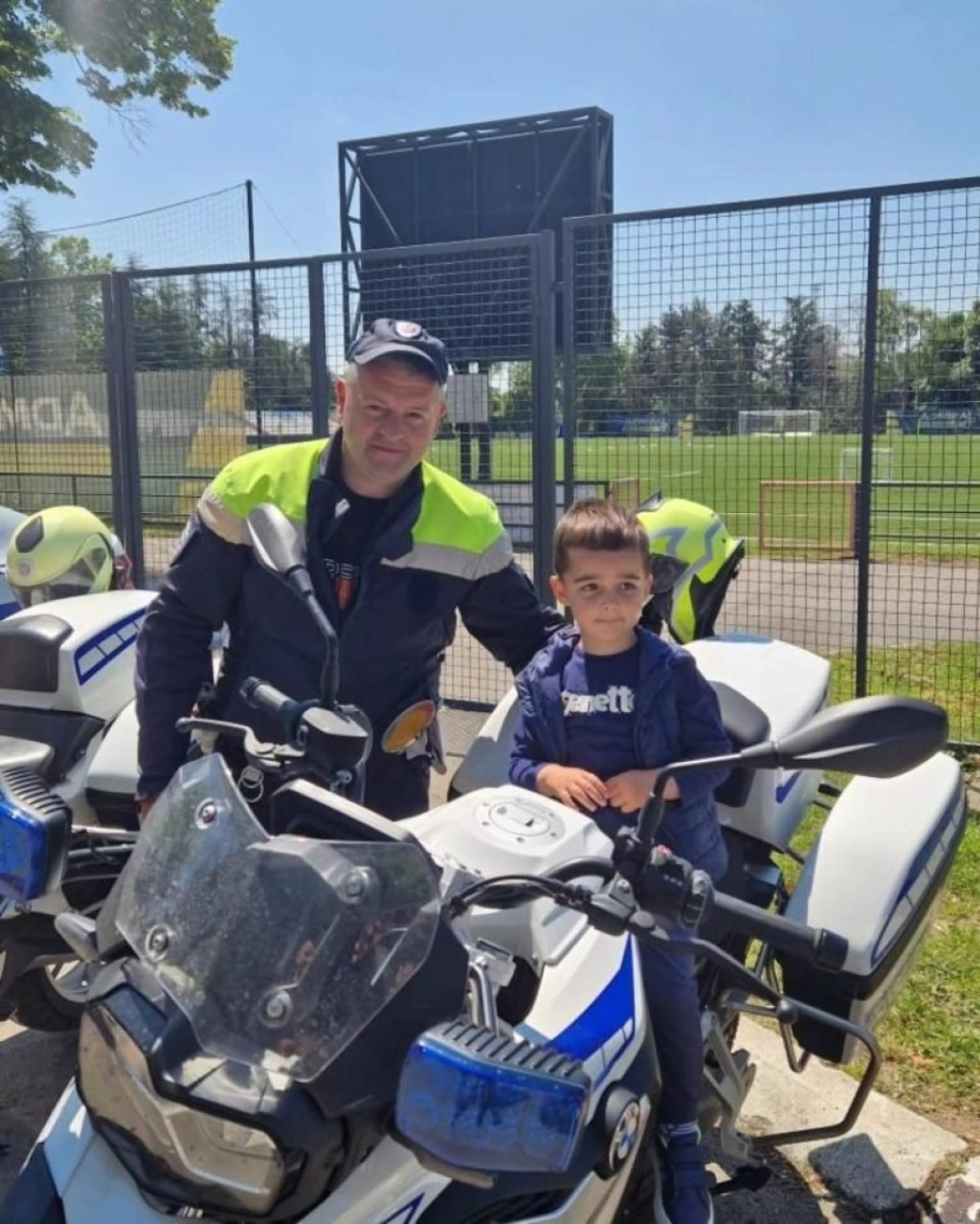 Njegova najveća želja je da jednog dana on bude taj koji će se, u uniformi, na motoru, starati da se saobraćaj na ulicama njegovog grada odvija kako treba.
