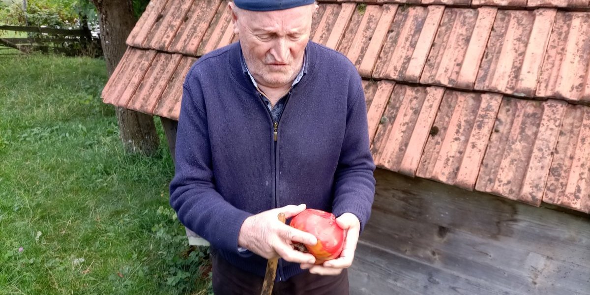 Paradajz je, kaže, sav obrao, nešto će iskoristiti za salatu, a ostatak će mu ćerka samleti za zimnicu. Drva za zimu su mu spremna, pa iako zimu ne voli, već sada je čeka.