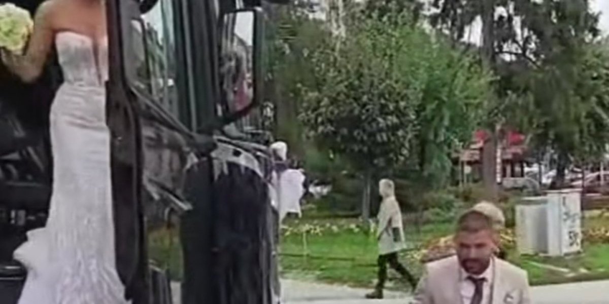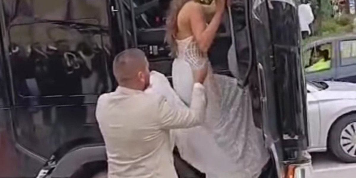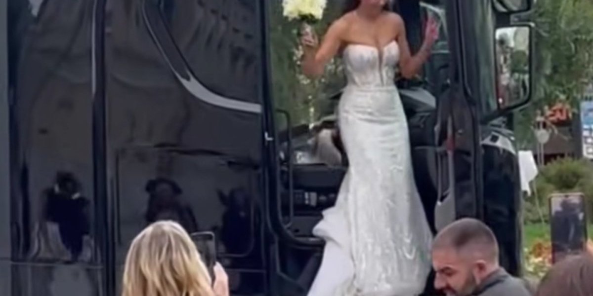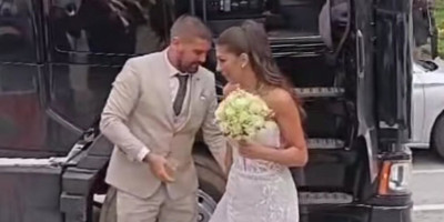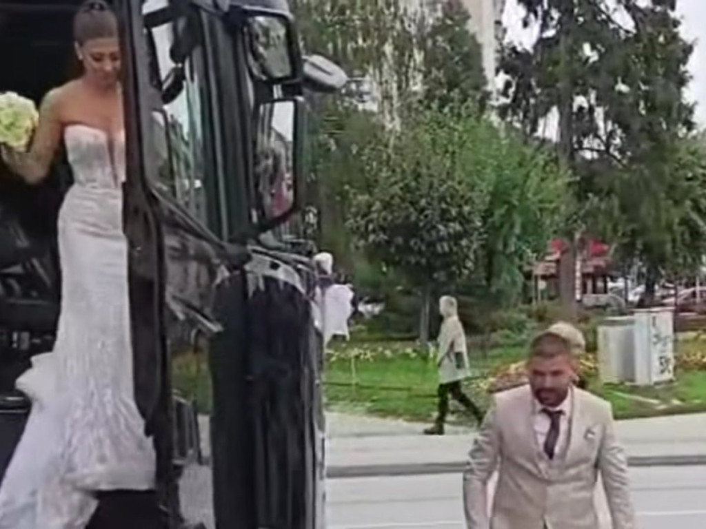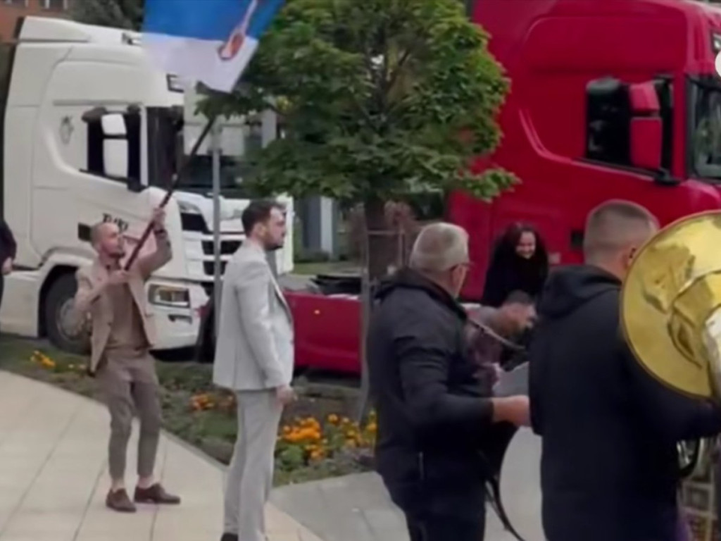 Dok je mlada stajala u kamionu pored otvorenih vrata i cupkala uz trubače, Nemanja je izašao iz kamiona i pomogao svojoj izabranici da siđe.