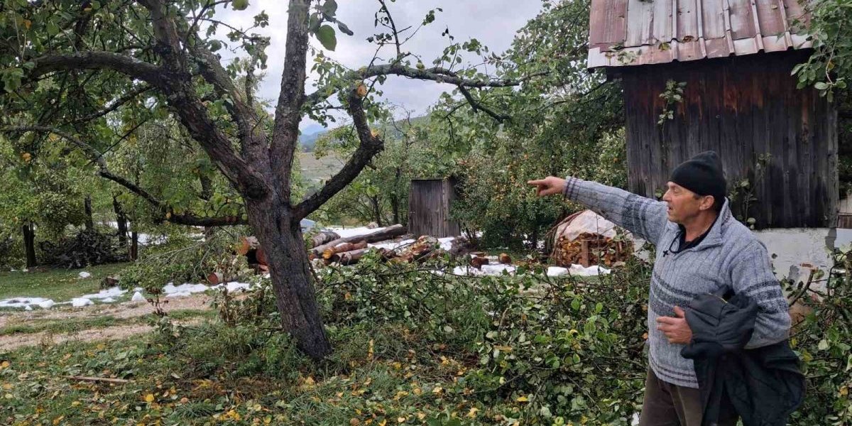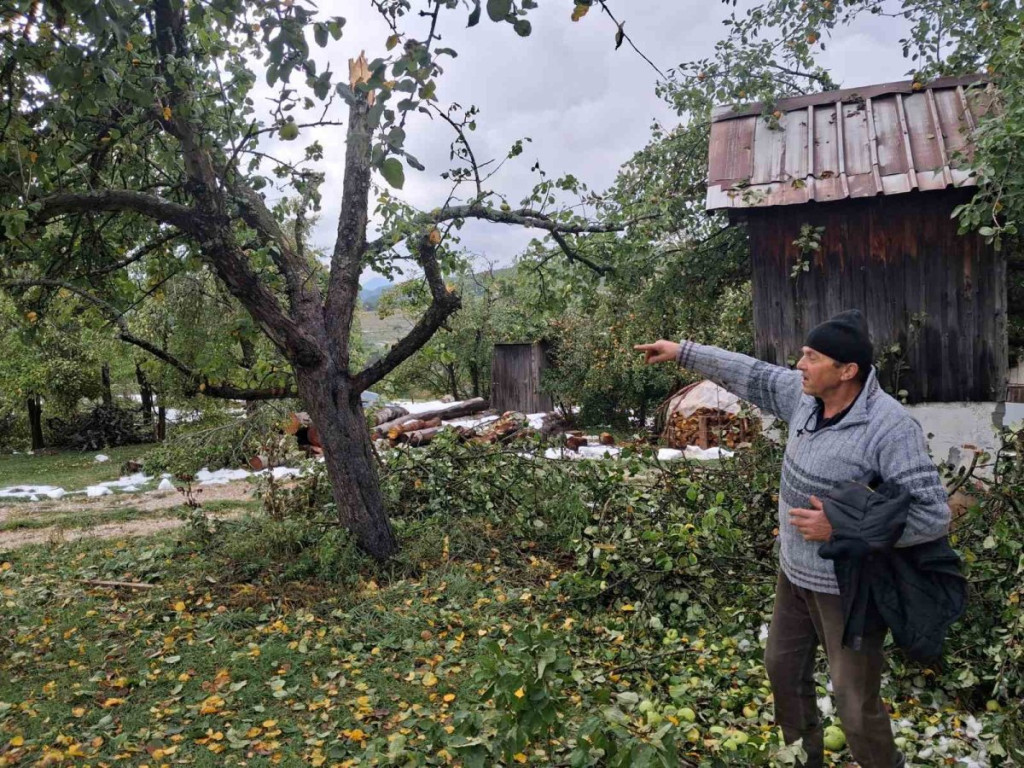 Meštanin Momčilo koji je sa nama pričao, najviše žali za polomljenim jabukama u voćnjaku, tek su kaže, sazrele za berbu.