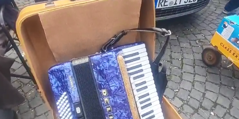 U nedelju mu je društvo pravio Novica. On nije "redovan" na pijaci, ali je došao da proda harmoniku.