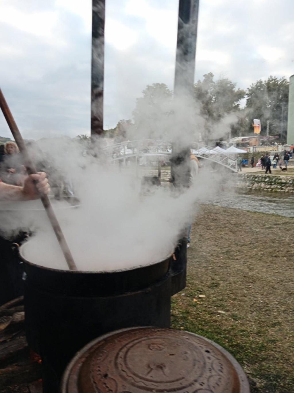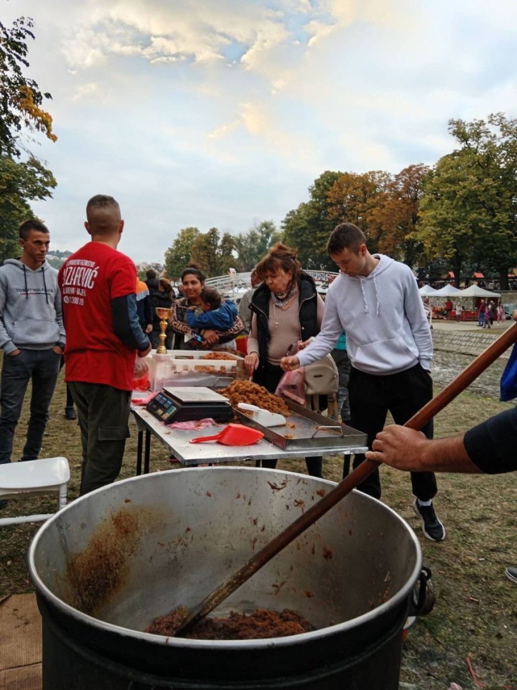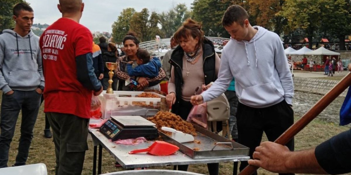 Daleko od centra oseća se prepoznatljiv miris koji otvara apetit i prosto kao putokaz navodi ka štandovima poređanim uz reku. Posetioci iz svih krajeva - u blizini automobili s oznakama Šapca, Novog Sada, Beograda...