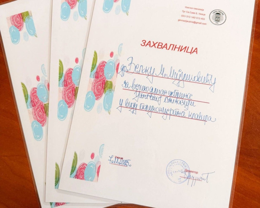 - Danas se krug zatvorio tamo gde je mnogo toga počelo - u našoj Užičkoj gimnaziji. Ovo je poklon naš poklon školi koja nas je naučila prvim ozbiljnim tonovima života – rekao je profesor Mijušković.