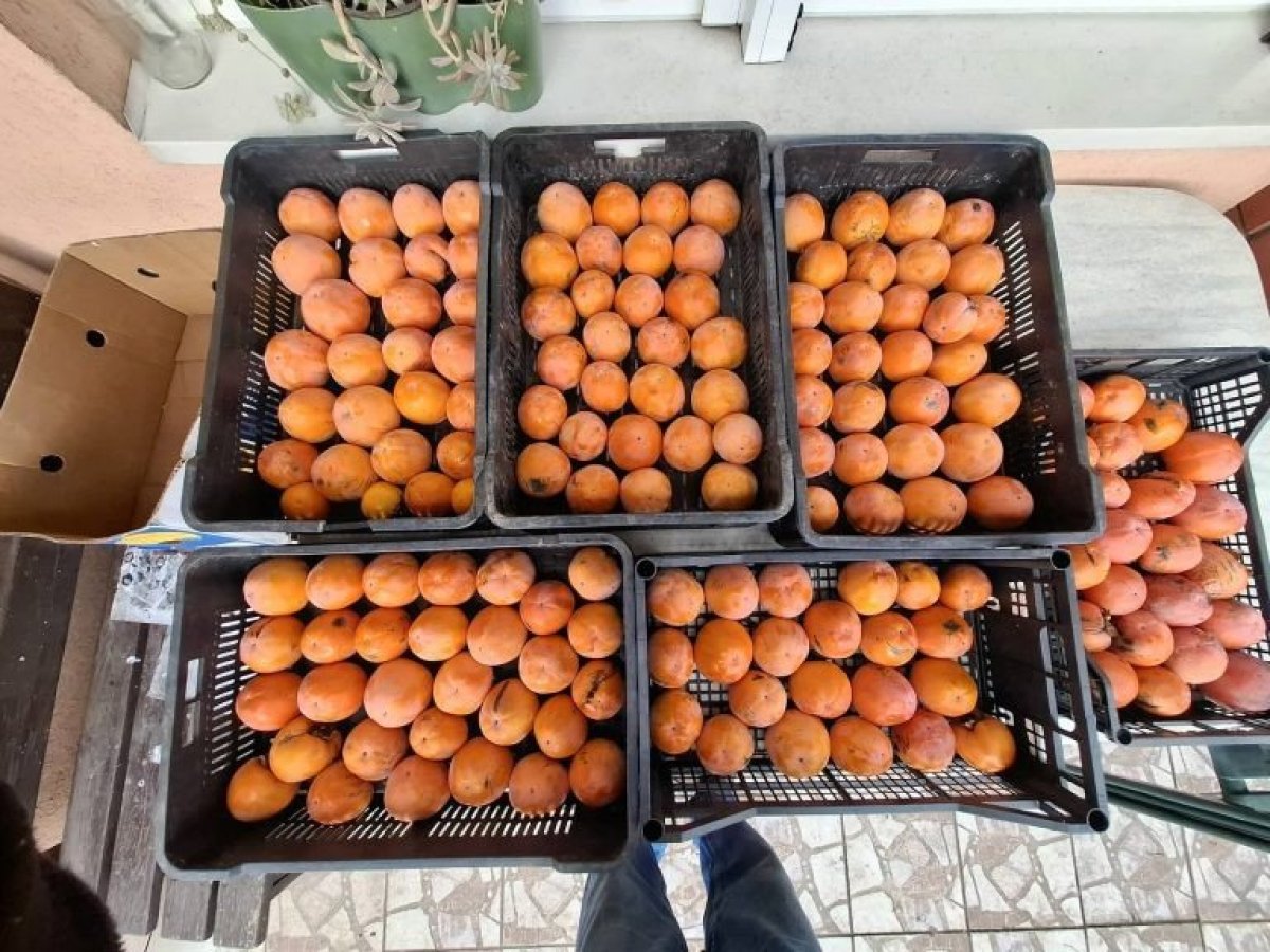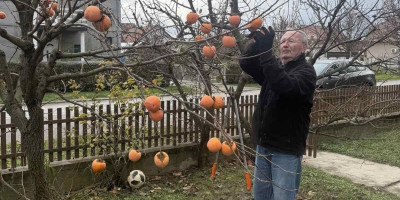 Svi prvo bace oko na ogolela stabla okićena krupnim narandžastim plodovima japanske jabuke ovih dana dozrele za branje. Na tri stabla rodilo je preko 200 plodova kojima će se, kada malo "odleže" i omekšaju sladiti ukućani i prijatelji.