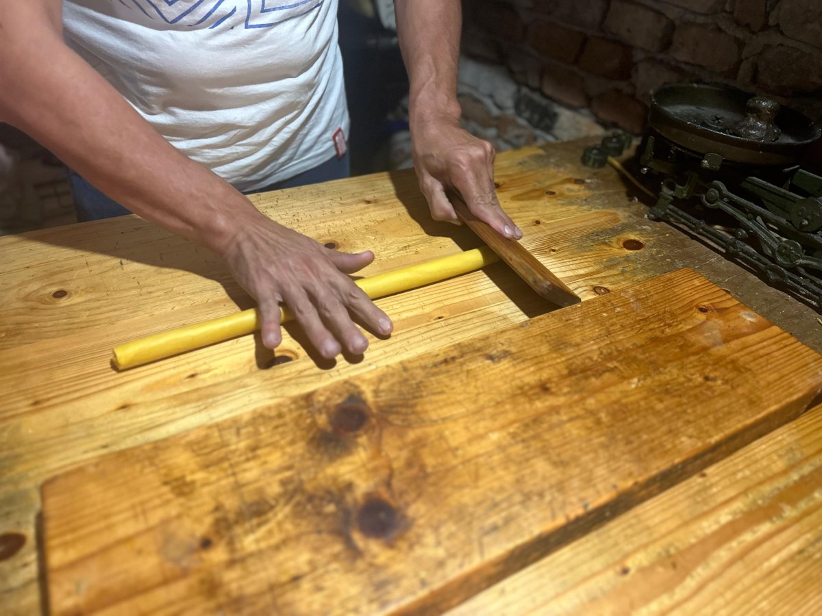- Mora da se ima osećaj pri valjanju da bude jednako, leve i desne strane, da sveća bude cilindrična i lepa. Daščicom pod uglom od 45 stepeni pravi se zadnji vrh sveće. Kao kada ručno razvijaš kore za pitu iskustvo presuđuje. Vosak dozvoljava ispravke, za razliku od drugih materijala - kaže on.