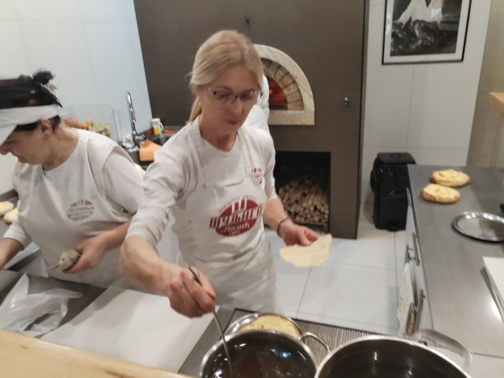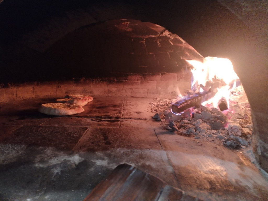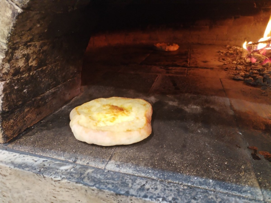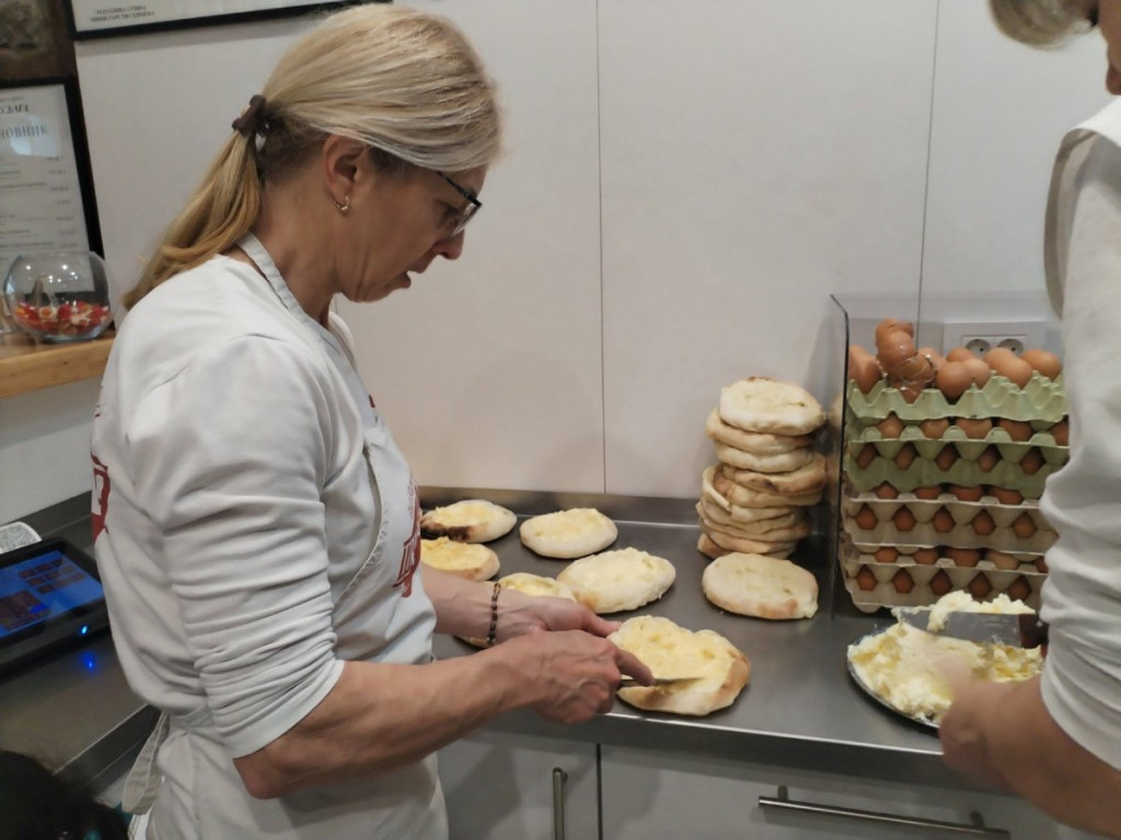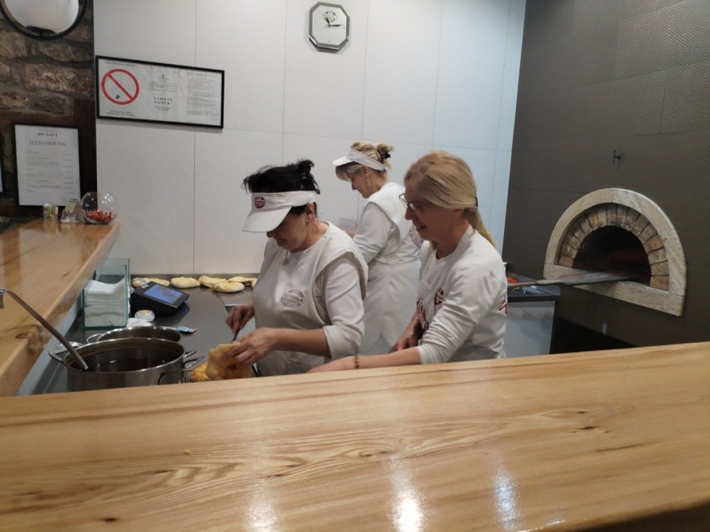 - Kompletna proizvodnja je u pekari. Ovde se pravi testo, a onda se lepinje peku u staroj zidanoj srpskoj peći gde je direktno loženje isključivo sa bukovim drvima. Kada je ispeče, seče se poklopac tako da bude malo udubljena. U nju stavljamo pomešani kajmak i jaje, pa se to ponovo peče nekoliko minuta, zavisi kako ko voli, da li življu ili pečeniju. Na kraju, isto po želji se stavlja količina pretopa. Pretop je uglavnom mešavina masti koja ostaje pri pečenju praseta i jagnjeta mada imamo i posebno, jer imamo goste koji ne jedu svinjske proizvode – objasnila je Vida.