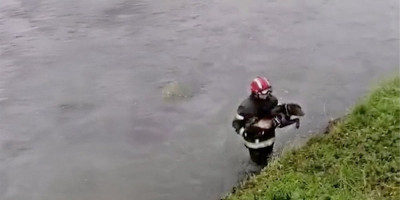 Nije poznato kako je pas dospeo u reku kod aleksinačkog keja, ali je bilo jasno da mu je pomoć potrebna i da ne može sam da se izbavi.
