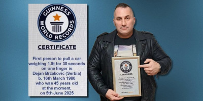 Dejan Brzaković (46) letos je uspeo da jednim prstom gura automobil težak 1,5 tonu i to pola minuta!