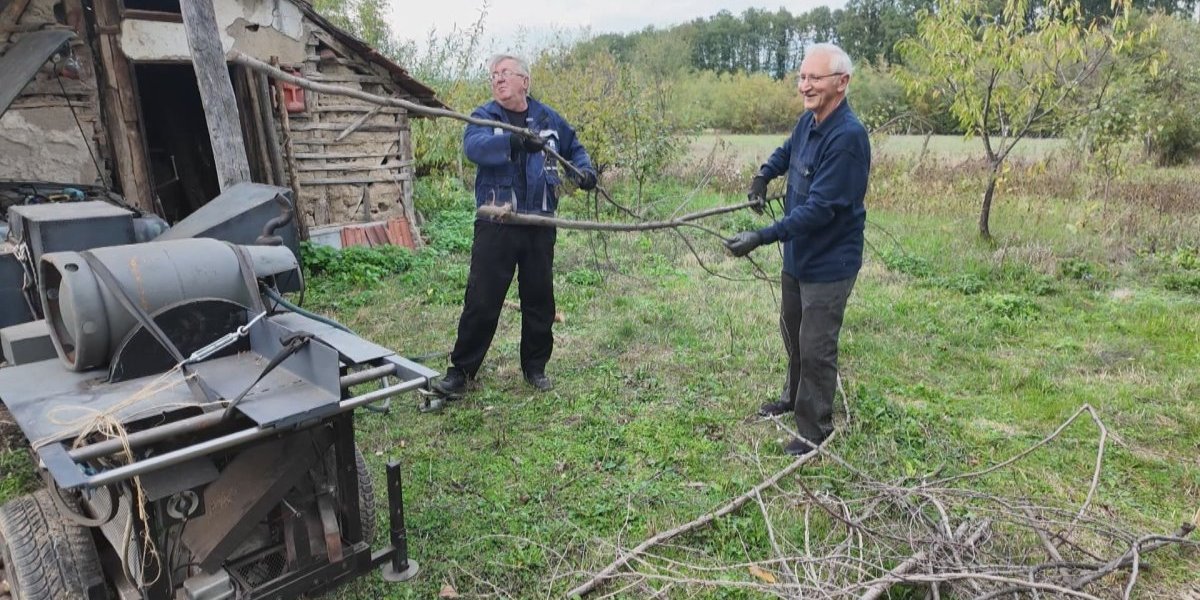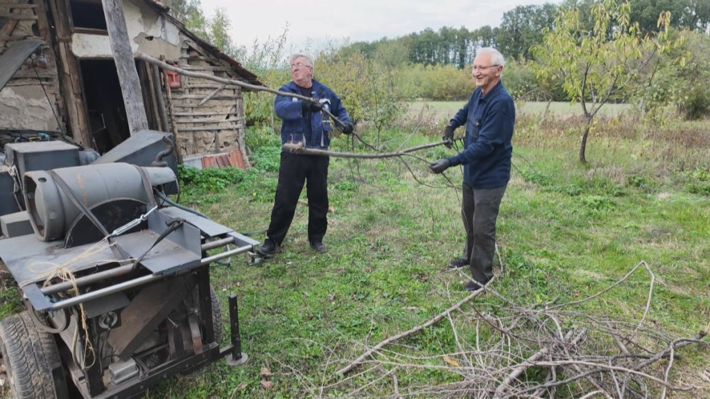 Dok Milan i Vuk pripremaju paljenje, sve deluje improvizovano, ali precizno - mašina za seckanje granja radi!