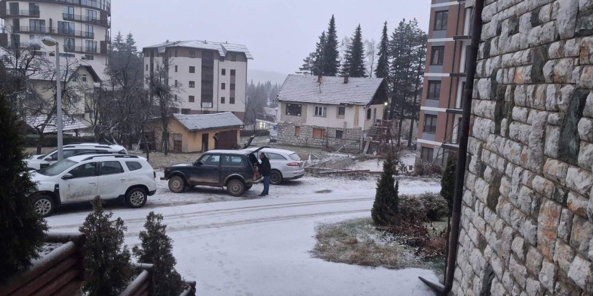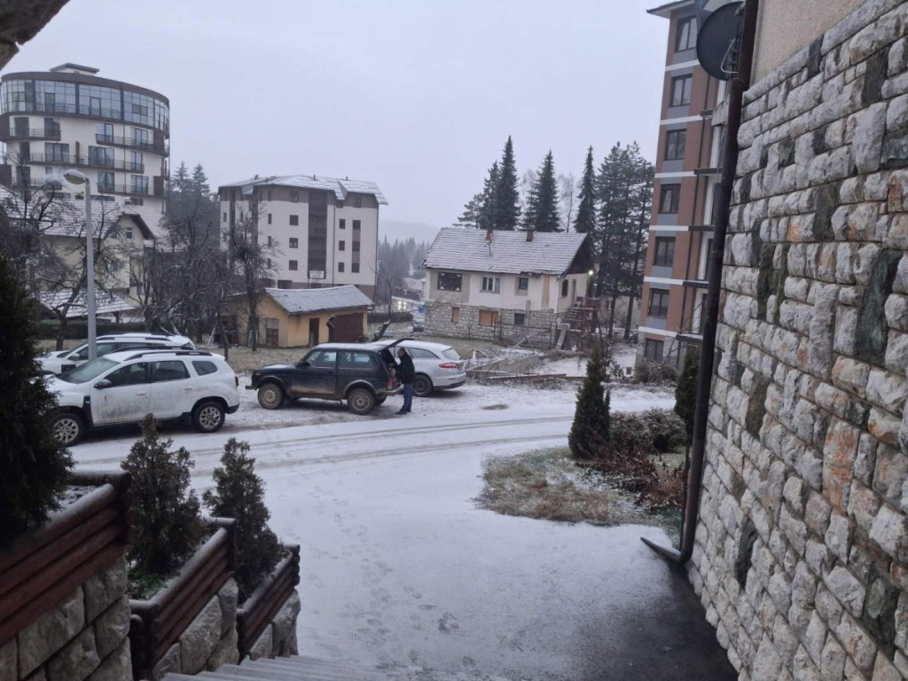 Sneg od jutros veje na obroncima Zlatibora, ali i u samom centru planine, pa se pokrivač zadržao na asvaltnim površinama, krovovima, automobilima...I, temperatura u ovom kraju jutros je bila u minusu.
