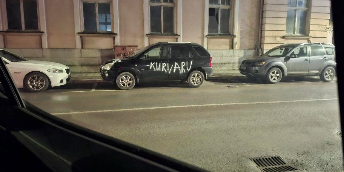 U Lazarevcu je na službenom automobilu marke "škoda" ispisano sprejom "Raša švaler".