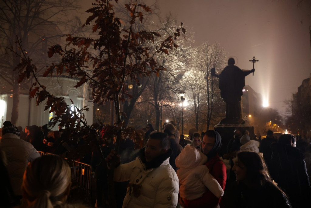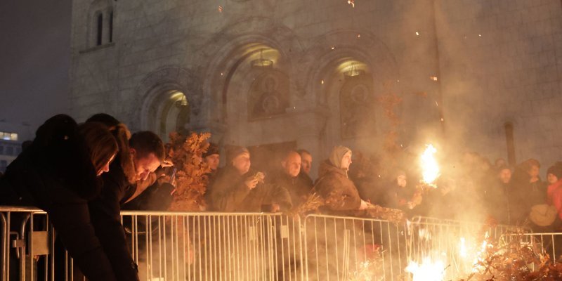 Badnjak ispred Hrama Svetog Save je zapaljen, tradicionalno, u 18 časova. Ljudi i dalje pristižu, vatra i dalje gori, ljudi su tu sa svojim porodicama i svako je doneo bar grančicu da zapali.