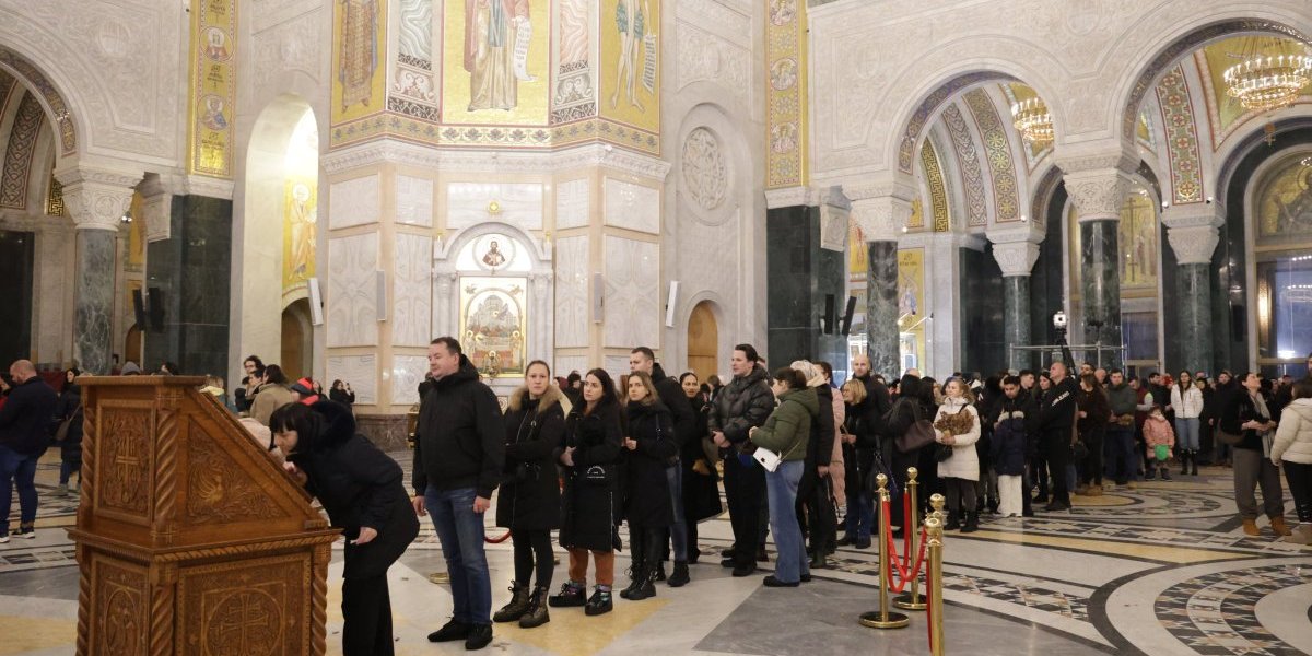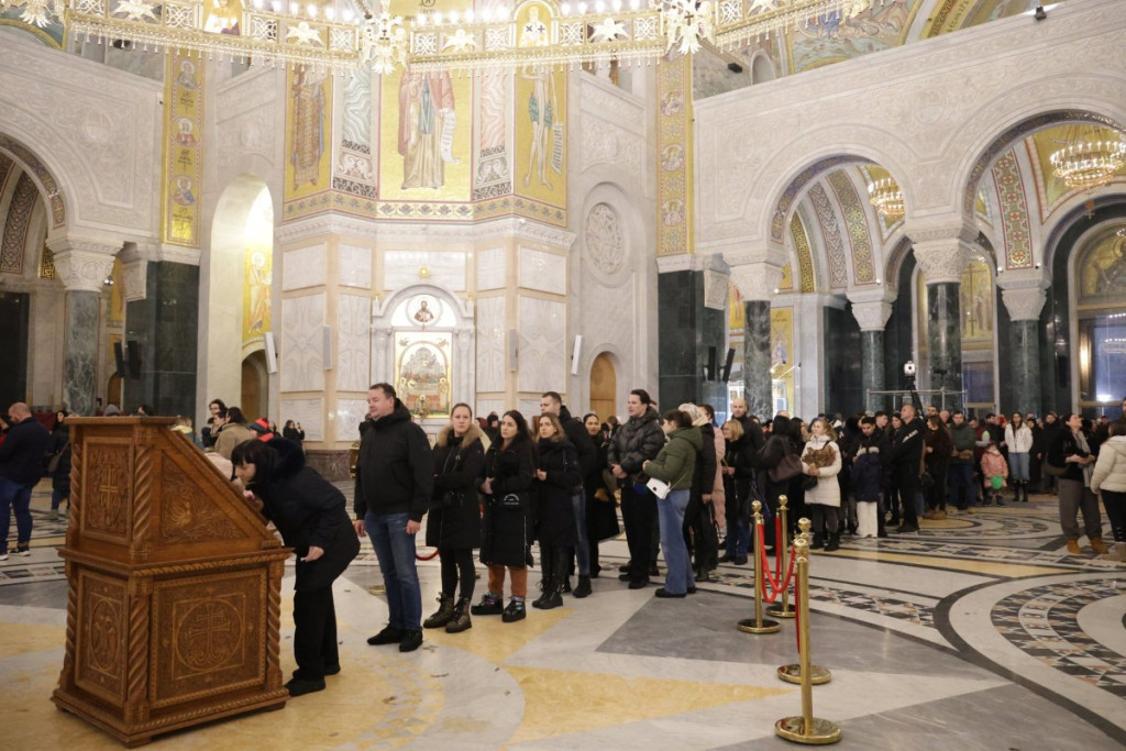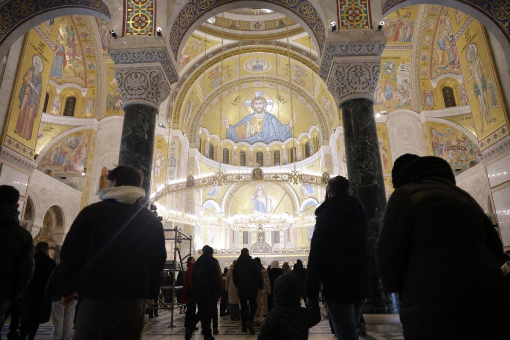 Uz vatromet, više stotina Lozničana obeležava Badnje veče u hramu Pokrova Presvete Bogorodice.