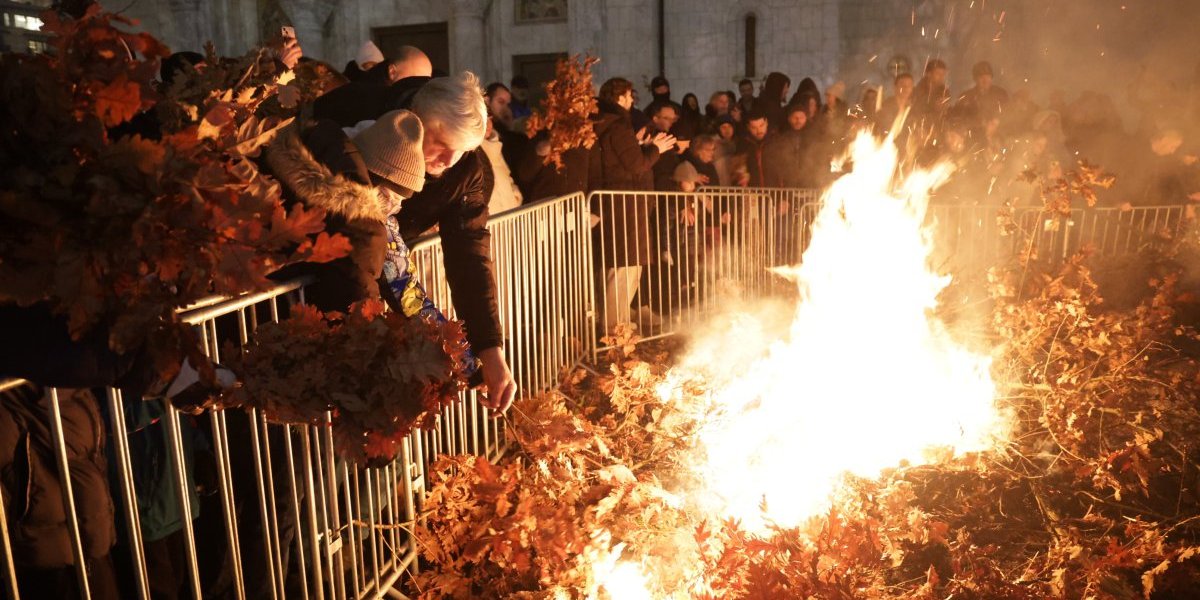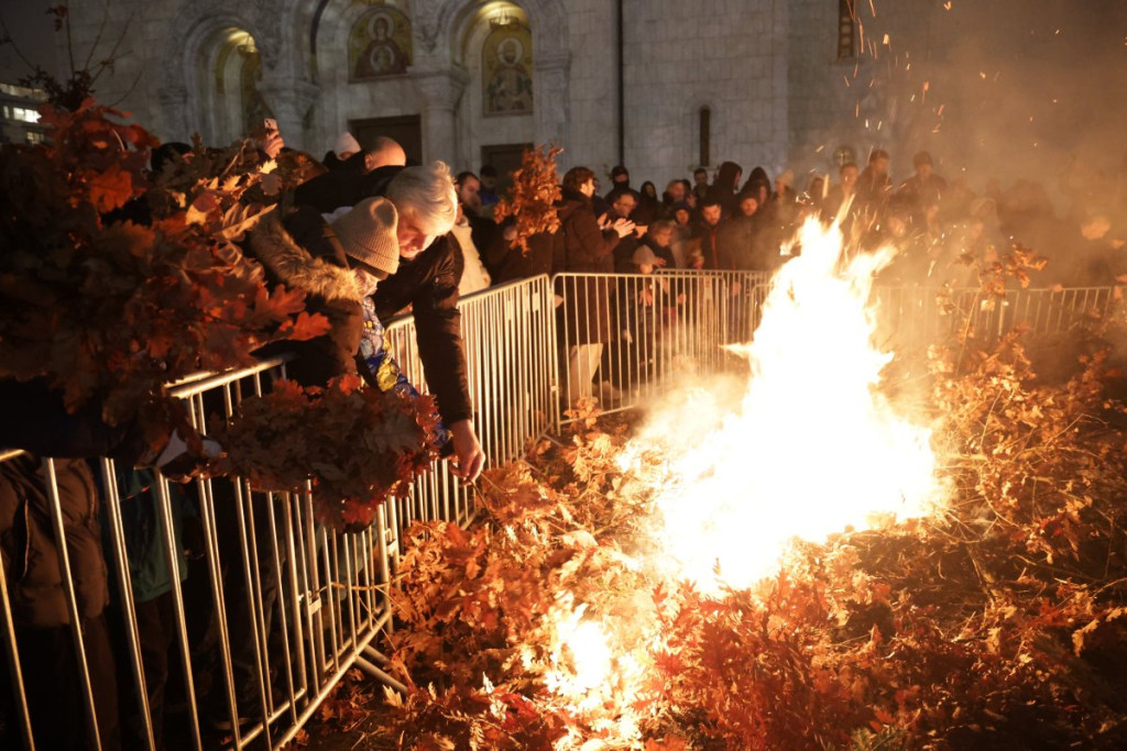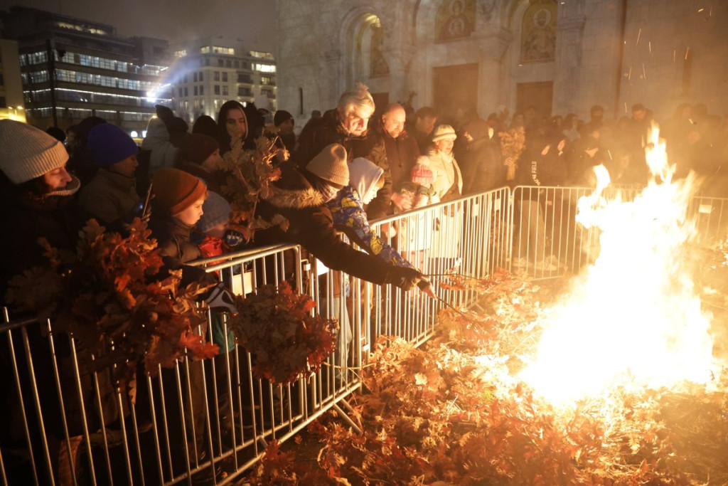 I vernici u Pančevu su se posle liturgije okupili ispred Svetouspenskog hrama i zapalili badnjak.