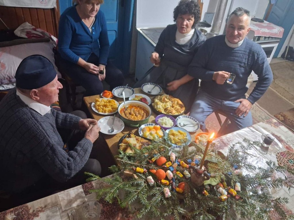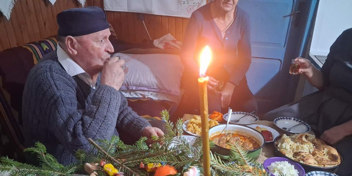 Pa dok su ostaci badnjaka goreli u starom "smederevcu", porodica je, kako nalaže običaj, ručala na slami, simbolično podsećajući na skromnost i zajedništvo. Uz kuvano vino i domaću rakiju, deda Lacan je pričao o nekadašnjim Božićima i dočeku Nove pravoslavne godine, o detinjstvu, roditeljima i vremenu kada je selo bilo puno života, a svaka kuća bila puna.